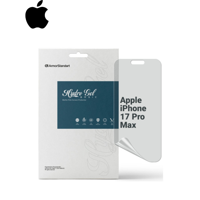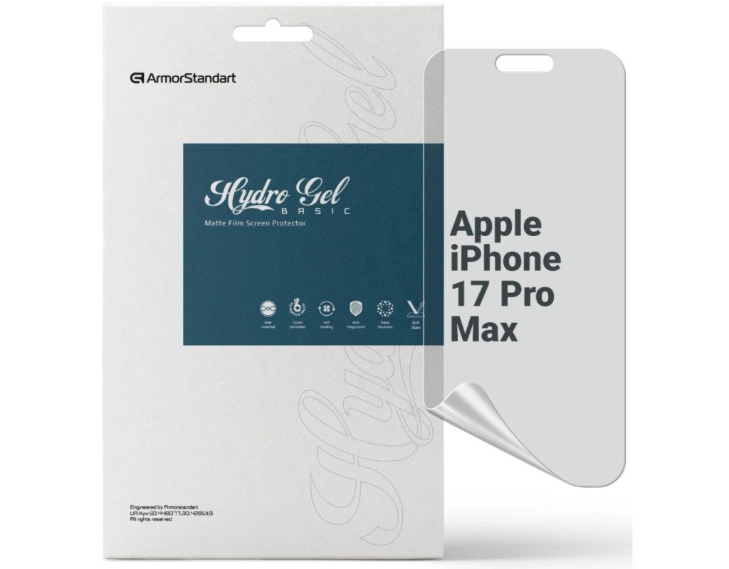 Призначення - для телефону, Вид покриття - матове, гідрогелева, Сумісність з моделями - Apple iPhone 17 Pro Max, Підходить для телефонів з діагоналлю - 6.9", Особливості - матова, Кількість в упаковці - 1 шт
