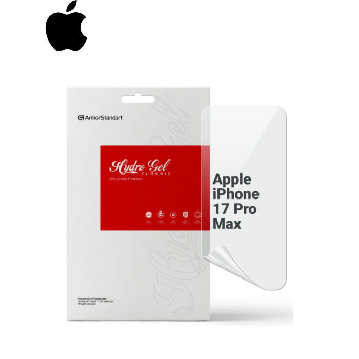 Призначення - для телефону, Вид покриття - глянсове, гідрогелева, Сумісність з моделями - Apple iPhone 17 Pro Max, Підходить для телефонів з діагоналлю - 6.9", Кількість в упаковці - 1 шт