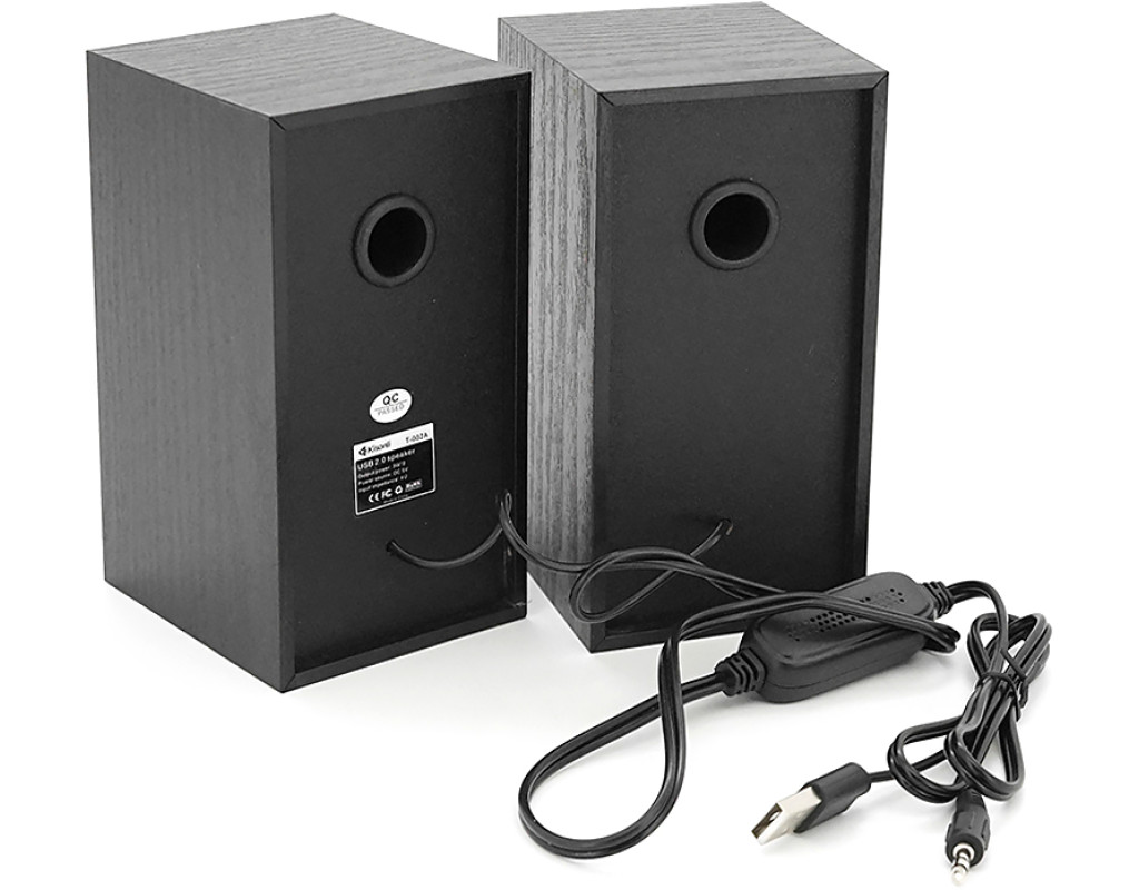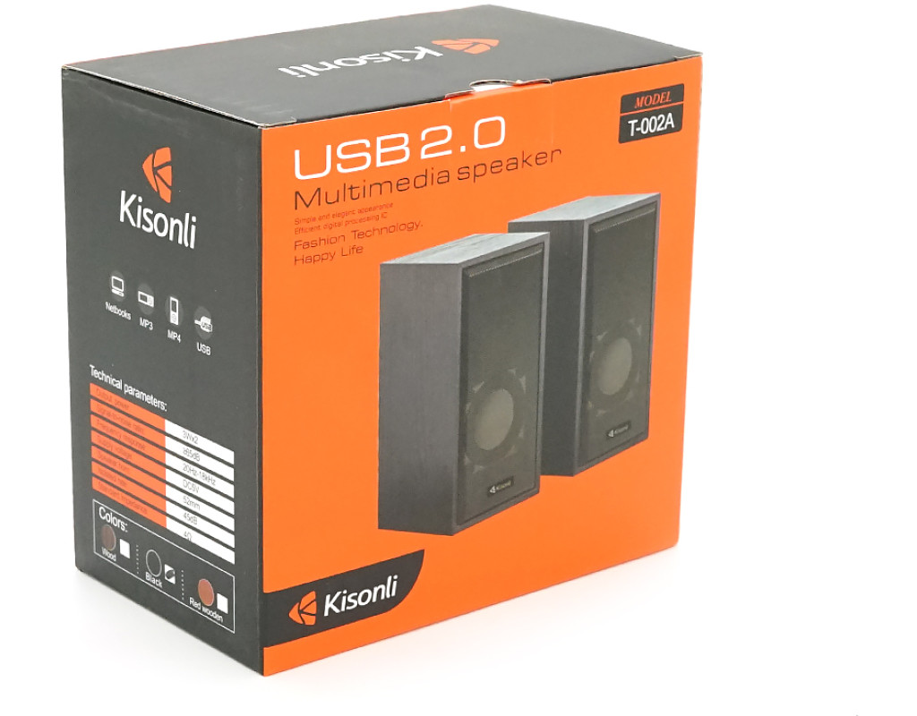 Колонки 2.0 Kisonli T-002A для ПК та ноутбука, USB + 3.5mm, 2x3W, 20Hz-18KHz, Black, BOX, Q30