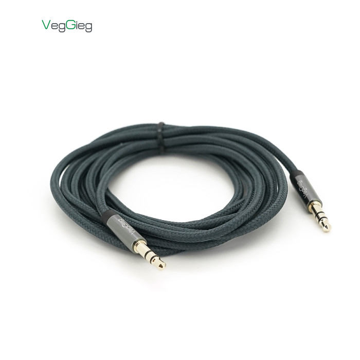 Кабель VEGGIEG V-A502 AUX Audio DC3.5 тато-тато 2.0м, GOLD Stereo Jack, обплетення, (круглий) Grey cable, Пакет