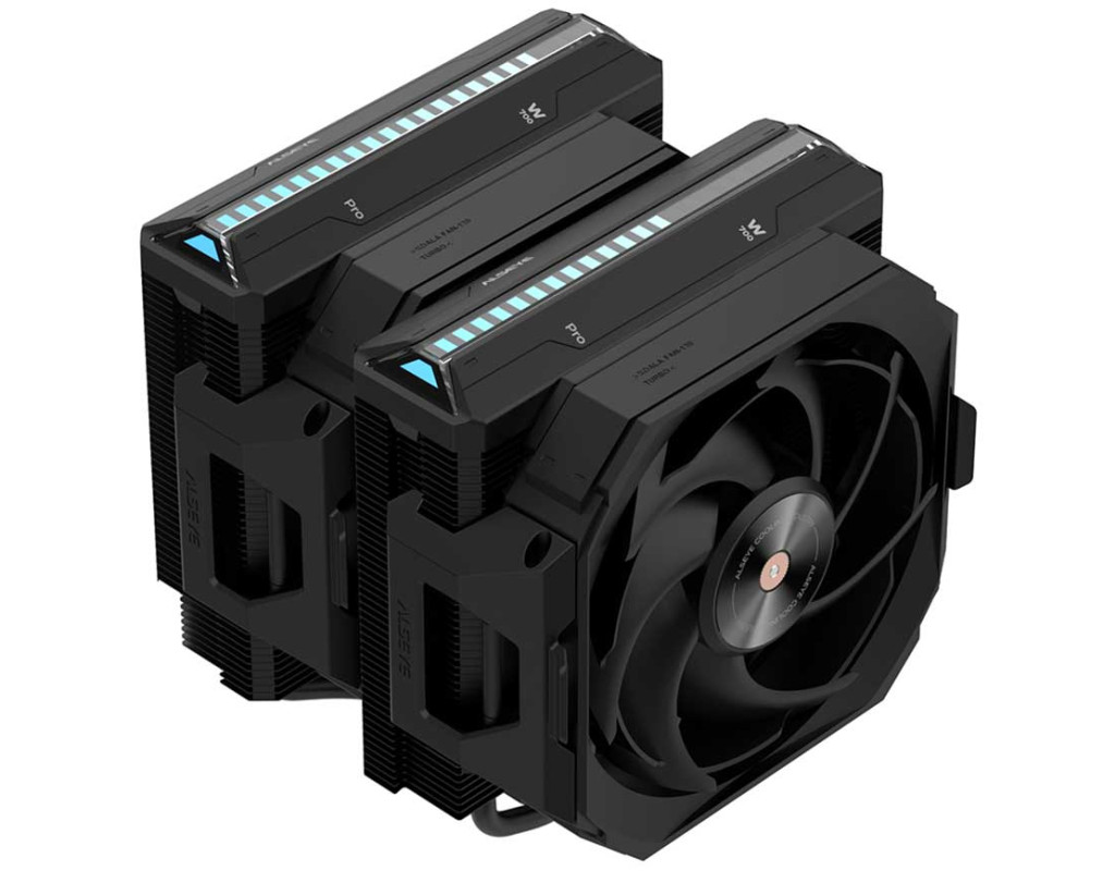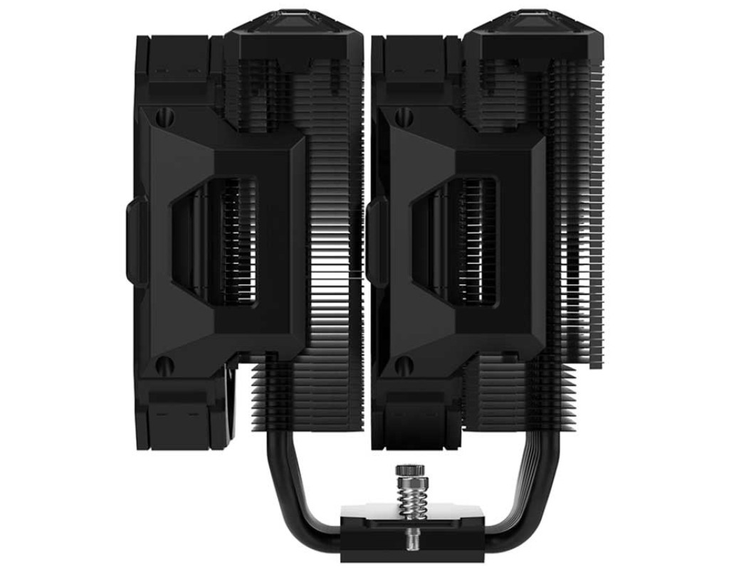 Для процесорів - INTEL, AMD, сокет - AM4, AM5, 1150, 1151, 1152, 1155, 1156, 1200, 1366, 1700, 2011, 2066, матеріал радіатора - алюміній + мідь, Максимальна частота обертів - 2200 об/хв, Тип підшипників - кульковий, рівень шуму - 35.2 dB, Підсвічування - ARGB, 7 теплових труб