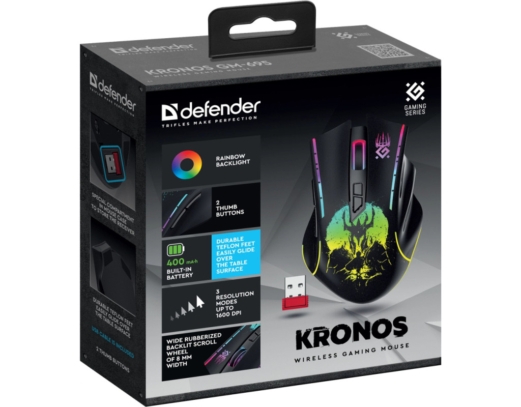 | Зустрічайте мишу Defender Kronos GM-695 Wireless Black (52695), спеціально створену для геймерів, які цінують якість, зручність та інновації. Цей бездротовий аксесуар поєднує в собі велику кількість унікальних властивостей, покликаних полегшити процес гри та підвищити вашу ефективність на віртуальних полях бою. Миша обладнана оптичним датчиком, що забезпечує точність руху з максимальною роздільною здатністю 1600 dpi, а три налаштовувані режими (1000/1200/1600 dpi) дозволяють легко адаптувати цей аксесуар під ваші потреби. Для вашого комфорту передбачено бездротове підключення через USB, що гарантує свободу рухів без обмежень. Завдяки вбудованому акумулятору ємністю 400 mAh, миша забезпечує довготривалу безперервну роботу. Конструкція пристрою відзначається міцністю та зручністю. Прогумоване покриття робить мишу приємною на дотик та гарантує надійний хват під час ігрових сесій, а міцні тефлонові ніжки забезпечують легке ковзання по будь-якій поверхні. Не можна не згадати широке прогумоване колесо прокрутки з підсвічуванням, що додасть барв вашому ігровому місці. Для оптимального управління передбачено шість кнопок, з яких дві – додаткові бічні, що дозволяють швидко налаштувати макроси відповідно до ваших уподобань. Програмне забезпечення Defender Game Center, яке працює на Windows, допоможе вам максимально персоналізувати функції миші. Зарядка через USB-Type C дозволяє легко і швидко відновити енергію вашого пристрою, що значить, ви завжди будете у готовності до нових викликів у світі ігор. Крім цього, спеціально розроблений відсік для зберігання приймача в корпусі миші додає зручності, роблячи транспортування ще простішим. Ця миша стане вашим надійним союзником у будь-якій грі, будь-то любимий World of Tanks або інші захоплюючі віртуальні битви. Оберіть Defender Kronos GM-695 Wireless Black – вашу гарантію перемоги та насолоду від ігрового процесу. |