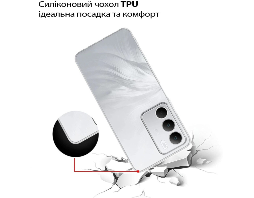 | "Тонкий і еластичний силіконовий чохол забезпечує надійний захист вашого смартфона від механічних пошкоджень, запобігаючи появі подряпин на корпусі. Завдяки високій якості матеріалу, чохол зберігає свою цілісність — він не рветься та не тріскається навіть при тривалому використанні. Чохол легко встановлюється, щільно прилягає до поверхні смартфона, не залишаючи повітряних зазорів, які могли б накопичувати пил, бруд або вологу. Легкий і непомітний, він не додає зайвого об'єму чи ваги вашому пристрою, забезпечуючи надійний захист від ударів, пошкоджень і вологи. Усі вирізи в чохлі точно відповідають роз'ємам і функціональним кнопкам смартфона, що гарантує зручне користування в будь-яких умовах. Силіконове покриття не ковзає, щільно облягає металевий корпус телефону та не перешкоджає доступу до роз'ємів для зарядки, USB-кабелю, гарнітури чи сканера відбитків пальців. Цей силіконовий чохол стане ідеальним вибором для тих, хто шукає стильний і практичний аксесуар для свого смартфона." |