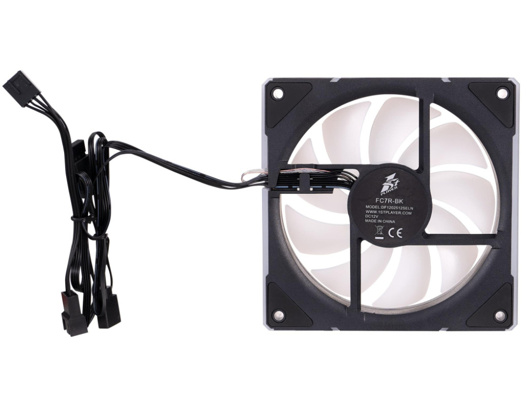 | 1stPlayer FC7R - 9-лопатевий вентилятор із зворотною конфігурацією лопатей, який забезпечує тиху роботу. Конструктивно закладена антивібраційна система кріплення для зниження шуму. Вентилятор підтримує синхронізацію ARGB для узгоджених світлових ефектів. Особливістю 1stPlayer FC7R є дизайн безкінечного дзеркала для чудового візуального ефекту. |