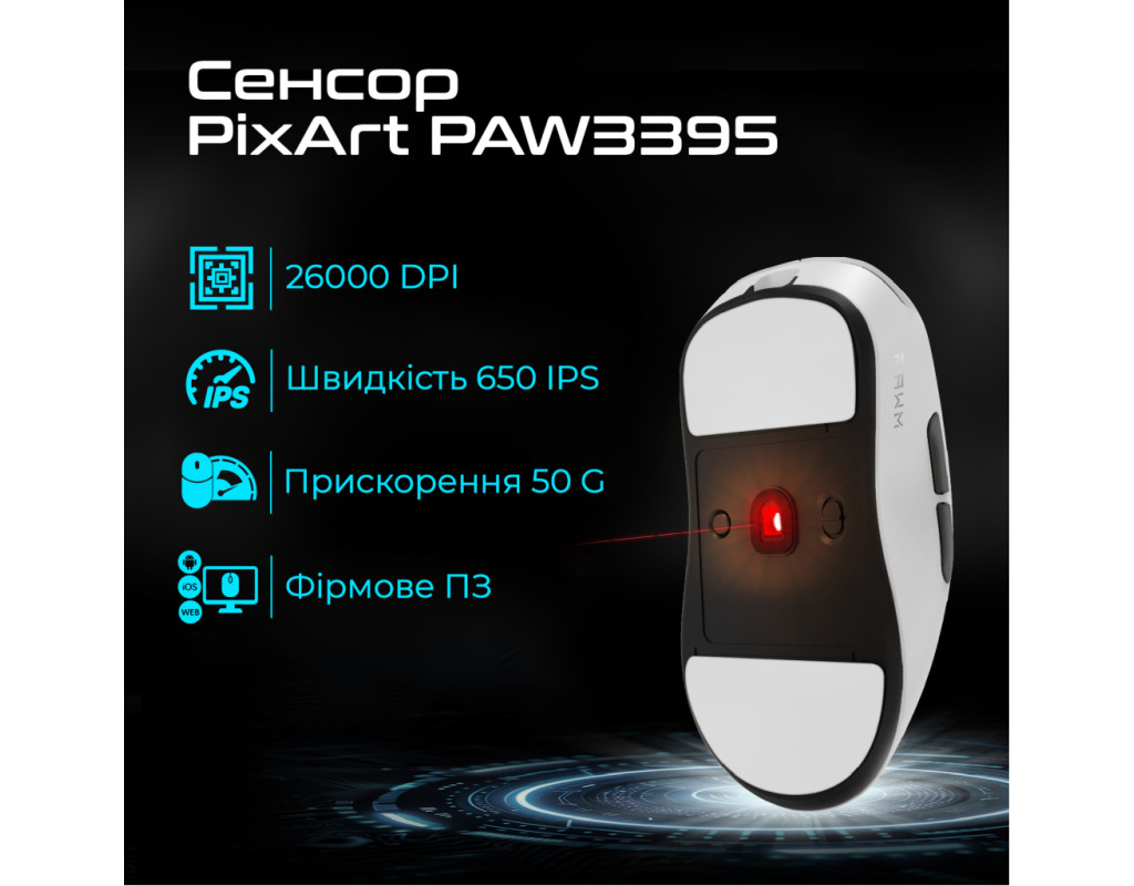 | Ігрова мишка RAWM ES21 Wireless/Bluetooth Black (ES21.black) є втіленням технічної досконалості для вимогливих геймерів, об'єднуючи в собі інноваційні рішення та безкомпромісну якість. Сенсор PixArt PAW3395, що є серцем цього пристрою, забезпечує роздільну здатність до 26 000 DPI, дозволяючи стежити за вашим кожним рухом з точністю, яка виходить за межі уявлень. Ця мишка підтримує бездротове та дротове підключення, що дає змогу налаштовувати її під будь-які потреби. Ви можете використовувати Bluetooth для максимального комфорту або USB адаптер 2.4 ГГц для миттєвої реакції. Підтримка USB Type-C відкриває можливості для швидкої зарядки, а індикатор рівня заряду сповістить про необхідність зарядки заздалегідь. Чіп PANCHIP PAN1080 забезпечує миттєвий відгук завдяки частоті опитування до 8000 Гц. Перемикачі Huano Green/White Dot з ресурсом у 100 млн кліків та вираженим механічним кліком створюють справжнє "механічне" відчуття, яке поціновують професійні геймери. Ультралегка конструкція миші з вагою всього 54 г дозволяє виконувати стрімкі маневри без зайвого навантаження на зап’ястя, що робить довгі ігрові сесії комфортними. Функція швидкого заряджання дозволяє заряджати мишу за 1.5 години, що робить перебої в грі мінімальними. Завдяки використанню чіпу ETA6003, енергозбереження стало ще ефективнішим. Фірмове ПЗ RAWM Hub надає гравцю гнучкість у налаштуванні майже кожного аспекту роботи миші, від чутливості сенсора до якості ковзання. Для найкращого комфорту є бокові кнопки, які додають функціоналу під час гри чи роботи в інтернеті, а спеціальні PTFE глайди забезпечують ідеальне ковзання. RAWM ES21 - це ваш надійний партнер у будь-якій віртуальній баталії, що поєднує сучасні технології з безкомпромісною якістю. Комплектується USB-донглом з підтримкою частоти опитування 1000 Гц. Це дійсно професійний інструмент для перемоги і задоволення в ігрових світах. |