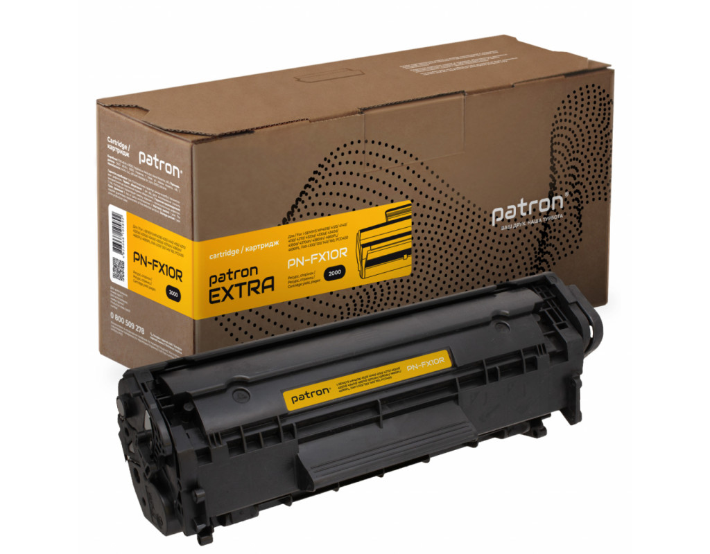 | Картридж PATRON CANON FX-10 Extra (для MF4120/ 4140) (CT-CAN-FX-10-PN-R) для лазерных принтеров Canon i-SENSYS MF4018, MF4120, MF4140, MF4150, MF4270, MF4660PL, MF4690P; FAX-L100, FAX-L120, L140, L160. Ресурс катриджа - 2000 листів, при 5% заповненні. Витрата залежить від того, наскільки сторінка заповнена. На стандартній сторінці тексту площа під чорнилом складає 5%. Це стандартна характеристика заповнення тонером поверхні паперу, і норми витрати тонера (ресурс картріджа) приводяться саме по ній. |