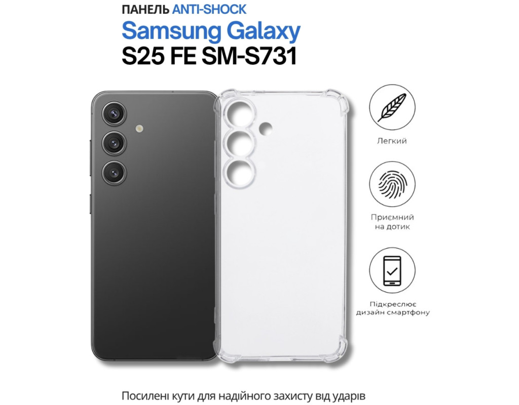 сумісність з моделями - Samsung Galaxy S25 FE, Тип чохла для телефону - накладка, Призначення - модельний, Колір - прозорий