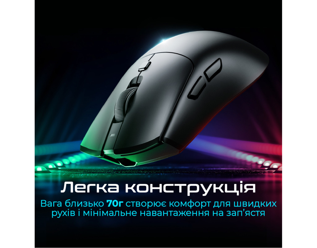 | Мишка RAWM SA-MH01 Wireless/Bluetooth Purple (SA-MH01.purple) — це ідеальний інструмент для геймерів і професіоналів, які потребують швидкості, надійності і комфорту у кожному русі. Її ультралегка вага в 70 г дозволяє виконувати маневри з легкістю, мінімізуючи навантаження на зап'ястя навіть при тривалому використанні. Високопродуктивний оптичний сенсор PixArt PAW 3395 у цій мишці забезпечує вражаючу точність і чутливість з роздільною здатністю до 26000 DPI, швидкістю 650 IPS і прискоренням до 50 g. Це дозволяє вам легко адаптуватися до різних ігрових сценаріїв і досягати найкращих результатів. Для стабільного і надійного зв'язку, мишка обладнана чіпом Nordic 52840, який підтримує одночасно дротове та бездротове підключення через Bluetooth 5.3 і USB адаптер 2.4 ГГц. Ви можете насолоджуватися частотою опитування до 8000 Гц, що забезпечує миттєву реакцію без затримок. Одним з ключових елементів, що підвищують надійність, є механічні перемикачі Huano Pink dot з ресурсом до 80 мільйонів кліків. Вони надають класичне "механічне" відчуття завдяки вираженому кліку, що забезпечує високу якість і тривалість служби. Особливу увагу варто звернути на довговічний акумулятор на 600 мАг, який гарантує до 165 годин безперебійної роботи. Зарядка триває близько 2.5 годин, що робить її неймовірно зручною для тривалих ігрових сесій. Фіолетовий колір мишки додає вашому робочому простору стильний вигляд, а наявність індикатора рівня заряду завжди підкаже коли необхідно підключити мишку до живлення. Завдяки PTFE глайдам, ця мишка забезпечує плавне ковзання поверхнею. Крім того, RAWM MH01 підтримує фірмове ПЗ RAWM Hub, яке дозволяє налаштовувати DPI, частоту, LoD та аналіз якості поверхні. Доступна підтримка на ПК, а також на iOS і Android пристроях, що відкриває нові можливості в персоналізації вашого досвіду користування. Завдяки всім цим характеристикам, RAWM SA-MH01 Wireless/Bluetooth Purple є незамінним вибором для тих, хто прагне поєднати продуктивність, ерганомічність і стиль в кожному кліці. |