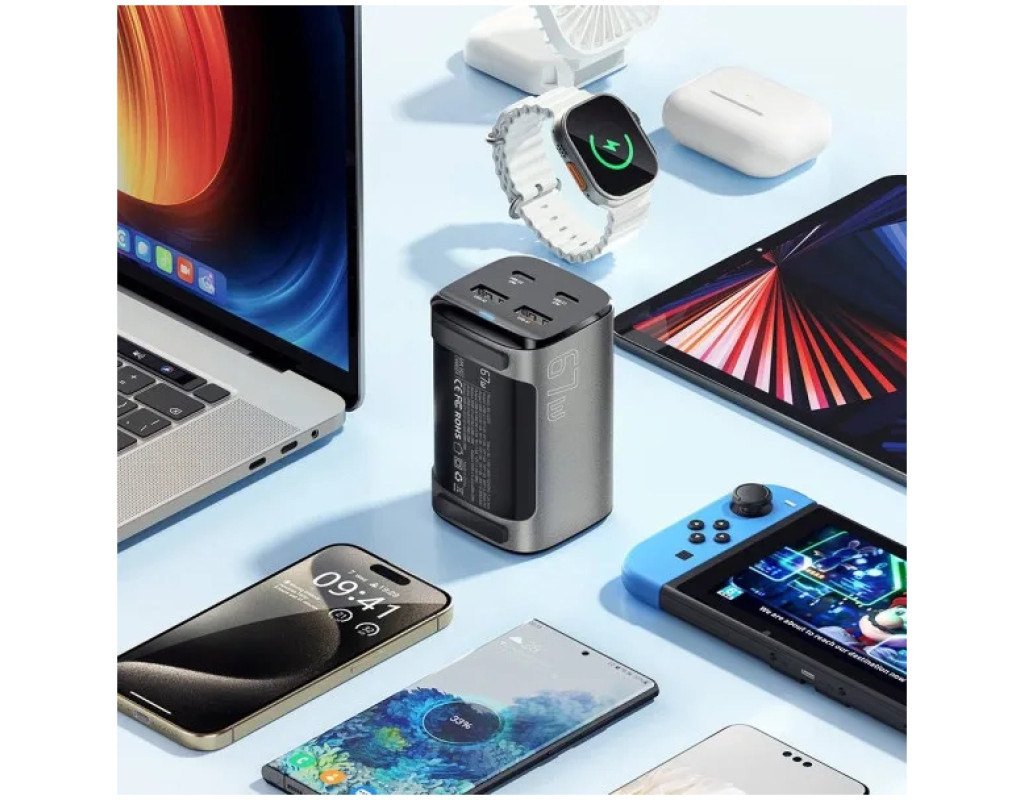 | Зарядний пристрій Essager 2xUSB-C + 2xUSB 67W GaN — це поєднання передових технологій та елегантного дизайну, що забезпечує швидке і ефективне живлення ваших пристроїв. Завдяки використанню технології GaN (нітрід галію), яка сприяє високій ефективності передачі енергії, цей зарядний пристрій вирізняється не лише своєю потужністю, але й компактністю. Він оснащений двома портами USB-C та двома портами USB-A, що дозволяє одночасно заряджати до чотирьох гаджетів. Окрім цього, пристрій підтримує широкий спектр протоколів швидкої зарядки: Power Delivery 3.0, Quick Charge 4.0, QC3.0, SCP, FCP, AFC, забезпечуючи сумісність з усіма популярними смартфонами, планшетами, ноутбуками та іншими гаджетами. Особливо важливо, що максимальна вихідна потужність досягає 67 Вт, що дозволяє ефективно заряджати навіть потужні ноутбуки. Серед переваг моделі слід виділити високий рівень безпеки завдяки комплексному захисту від перезаряду, перегріву та короткого замикання. Крім того, пристрій виготовлений з вогнетривких матеріалів, що підвищує його надійність. Практичний дизайн дозволяє зручно користуватись зарядним пристроєм як вдома, так і в подорожах. Це ідеальний вибір для сучасних користувачів, які цінують якість, надійність і стиль в одному продукті. Зарядний пристрій Essager робить процес зарядки вашим комфортним помічником у будь-яких умовах. |