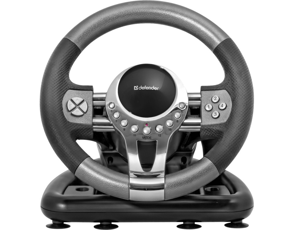 Універсальне ігрове кермо відмінно підходить для самих різних гоночних симуляторів. Ефект вібрації Робить аварії і зіткнення більш реалістичними (гра повинна підтримувати функцію вібрації ігрового контролера). 12 кнопок Два підкермових перемикача Важіль перемикання передач 8-позиційний перемикач видів Надійне кріплення до столу Кермо надійно кріпиться до стільниці за допомогою струбцин. Блок педалей - газ і гальмо Гумове покриття керма |