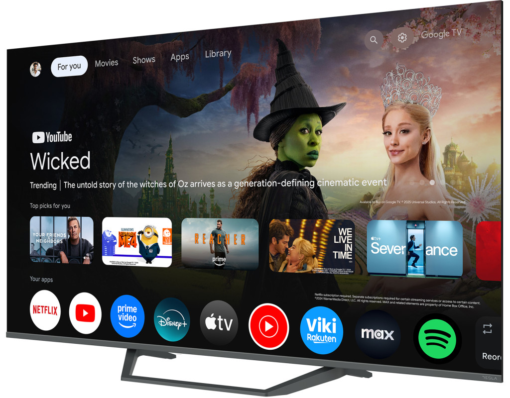 Телевізор Tesla Q55E655GUS - втілення передових технологій і сучасного дизайну в одному пристрої. Цей розумний телевізор зроблений для того, щоб подарувати незабутні моменти розваг і комфортного перегляду улюбленого контенту. Поєднання високої якості зображення, потужного звуку та інноваційних функцій дасть змогу зануритися у світ яскравих емоцій, навіть не виходячи з дому. Сучасна ОС Операційна система Google TV надає багатий вибір різноманітних розважальних додатків і зручний інтерфейс для навігації. Завдяки підтримці Wi-Fi і Bluetooth можна легко отримати доступ до контенту з інтернету або дивитися улюблені фільми, шоу та музику на популярних сервісах. Розміри та дизайн пристрою Пристрій має 55-дюймовий екран, що дає змогу зануритися в захопливий контент із дивовижним рівнем деталізації. Телевізор створений у сучасному та елегантному дизайні, який гармонійно доповнить інтер’єр будь-якого приміщення. Тонкі рамки максимізують площу перегляду, дозволяючи насолоджуватися кожним моментом без відволікаючих елементів. Унікальні характеристики екрана Екран Tesla Q55E655GUS оснащений передовими технологіями. 4K Ultra HD пропонує чіткі та реалістичні зображення з багатими кольорами та глибокими тонами. Технологія HDR підіймає контрастність і яскравість до нових висот, даючи змогу побачити кожну деталь навіть у найтемніших сценах. Частота оновлення 60 Гц забезпечує плавне відображення швидкого руху. Інші особливості телевізора Численні порти HDMI та USB дають змогу під’єднувати різні пристрої, як-от ігрові консолі, Blu-ray плеєри або ноутбуки, розширюючи можливості розваг. |