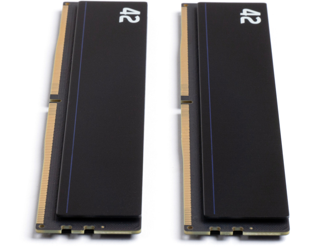 Exceleram 42 DDR4/DDR5 U-DIMM – універсальна та надійна оперативна пам’ять Нова серія оперативної пам’яті 42 від Exceleram створена як відповідь на будь-які питання про пам’ять – навіть ті, які ви ще не ставили. Назва серії «42» відсилає до культового фільму «Автостопом по Галактиці», де число 42 символізує «відповідь на головне питання життя, Всесвіту і всього такого». Серія 42 розроблена, щоб забезпечити стиль, сумісність та надійність у будь-якій збірці. Модулі оснащені анодованим алюмінієвим радіатором, який ефективно відводить тепло та надає мінімалістичного чорного дизайну вашій збірці. Низькопрофільна висота 38,5 мм дозволяє встановлювати пам’ять у компактні корпуси (SFF) та під великі процесорні кулери без обмежень. Серія 42 підтримує Dual Channel та Single Channel конфігурації, сумісна з платформами Intel та AMD. Всі модулі виготовляються на Тайвані та тестуються вручну для забезпечення повної сумісності та стабільної роботи у будь-яких конфігураціях. Модулі серії 42 доступні в широкому діапазоні обсягів та налаштувань, підтримують різні латентності та напруги, що дозволяє підбирати оптимальну конфігурацію під будь-які завдання – від домашнього ПК до робочої станції чи ігрового комп’ютера. Exceleram надає довічну обмежену гарантію на всі модулі серії 42, підкреслюючи надійність та довговічність своїх продуктів. Виробник гарантує, що ваша оперативна пам’ять прослужить стільки ж, скільки й ваша збірка, навіть при інтенсивному використанні. Серія 42 DDR4/DDR5 U-DIMM поєднує у собі: