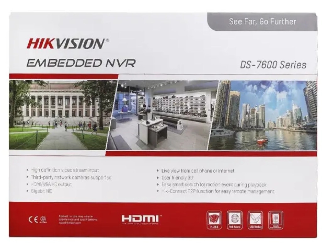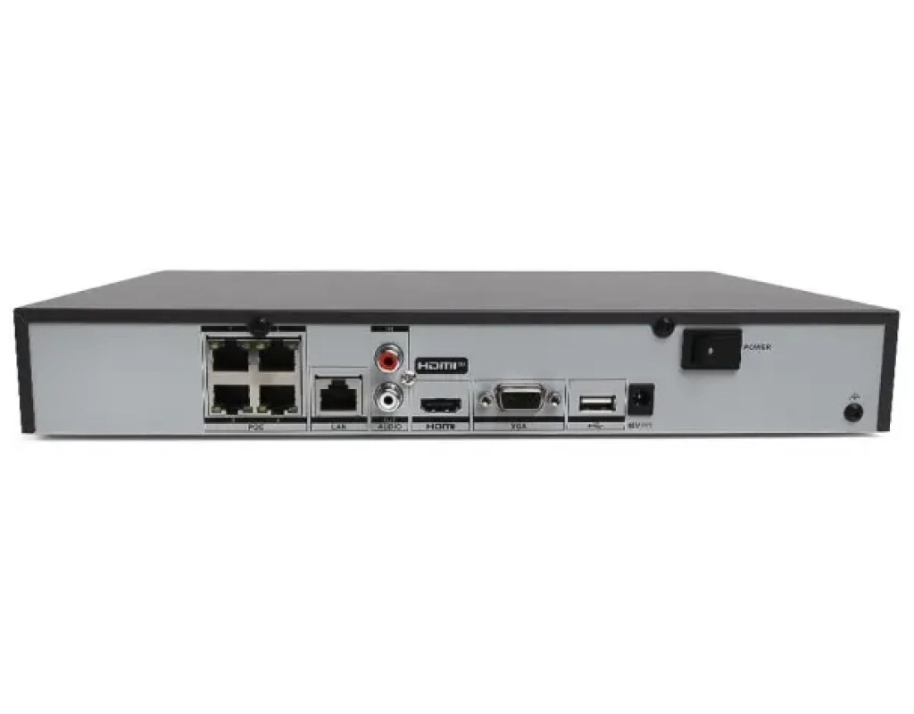 Hikvision DS-7604NXI-K1/4P(B) — 4-канальний мережевий відеореєстратор. Підтримує підключення 4 IP-камер, оснащений функцією AcuSense для виявлення руху людей та транспортних засобів, а також підтримує технологію PoE. Основні характеристики відеореєстратора Hikvision DS-7604NXI-K1/4P(B)