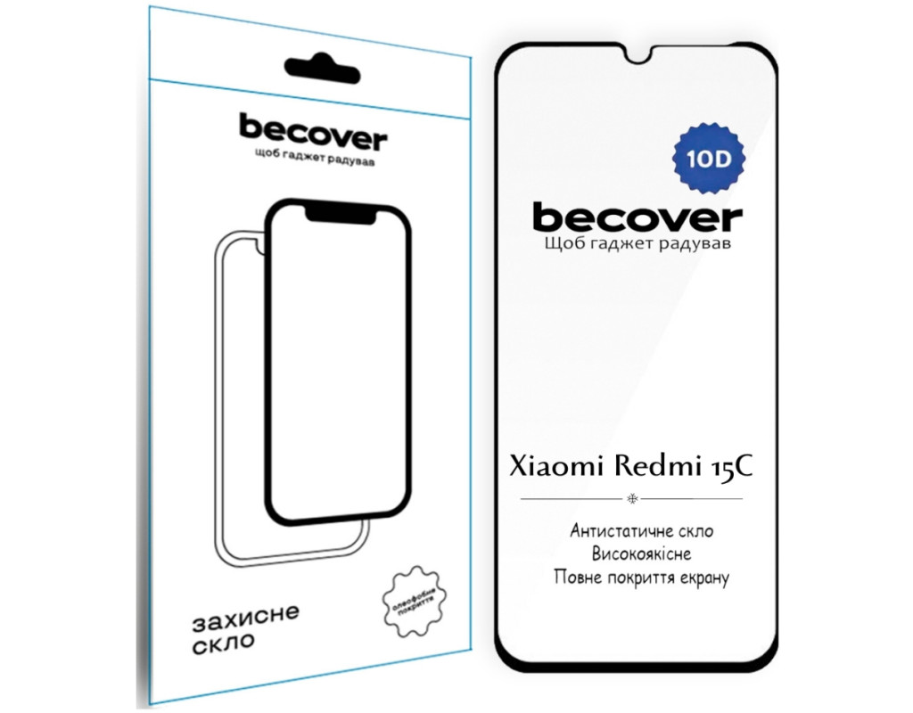 Призначення - для телефону, Вид покриття - глянсове, Сумісність з моделями - Xiaomi Redmi 15С 4G/5G, Особливості - з рамкой, Спосіб наклеювання - на клейкій основі, Кількість в упаковці - 1 шт