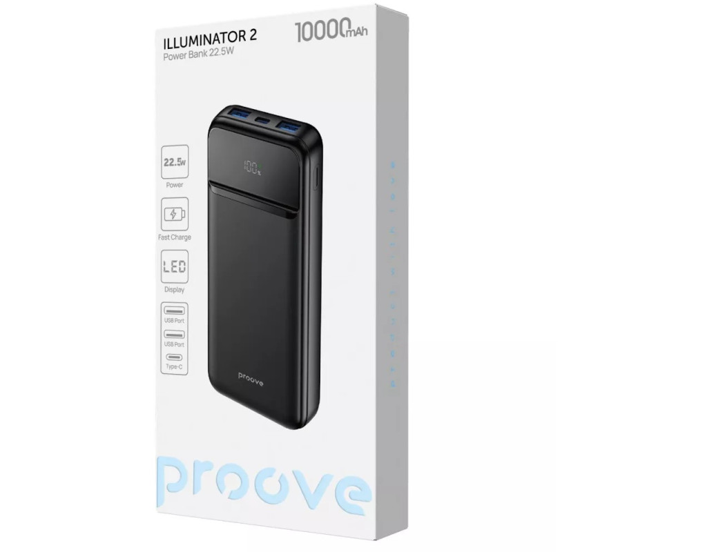| Універсальна мобільна батарея Proove Illuminator 2 поєднує у собі високу потужність, стильний дизайн та зручність у використанні. Завдяки ємності 10 000 мА·год він забезпечує надійне підживлення смартфонів, планшетів та інших гаджетів у будь-якій ситуації.