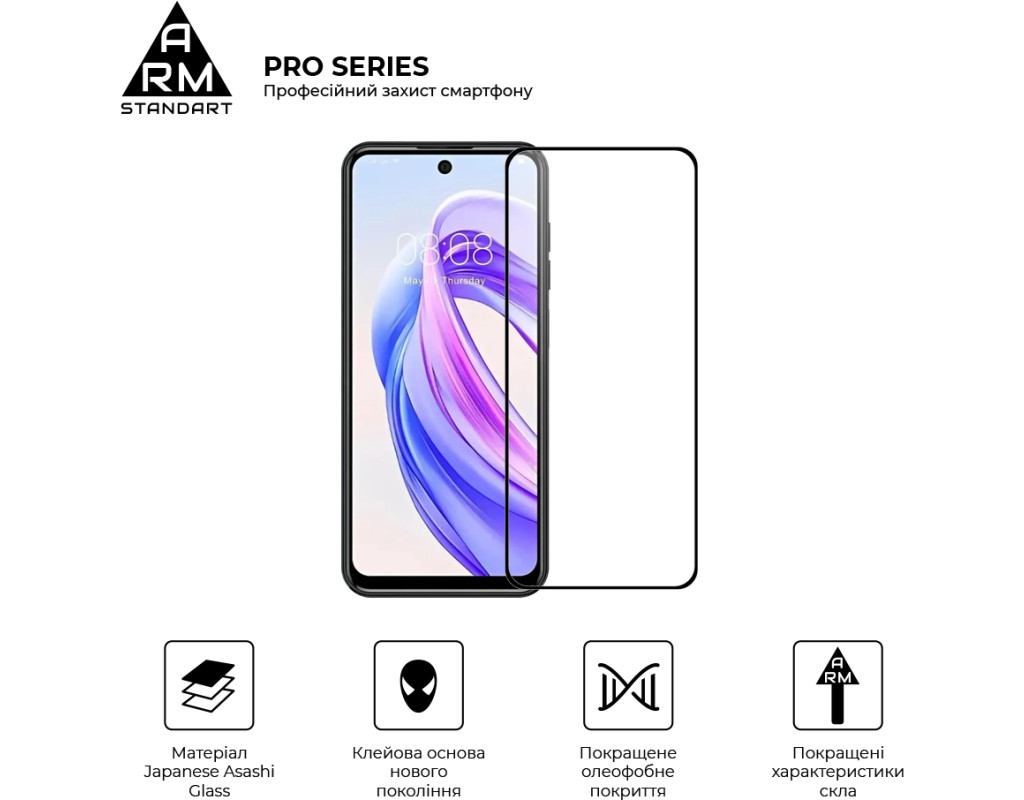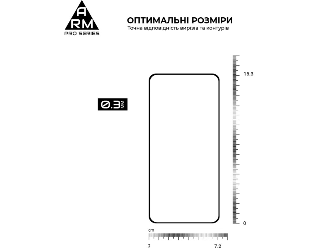 - Захисне скло Armorstandart Pro Series має оптимальні габарити та товщину на 0.3 мм. Передбачено вирізи під усі датчики, камери та роз'єми.