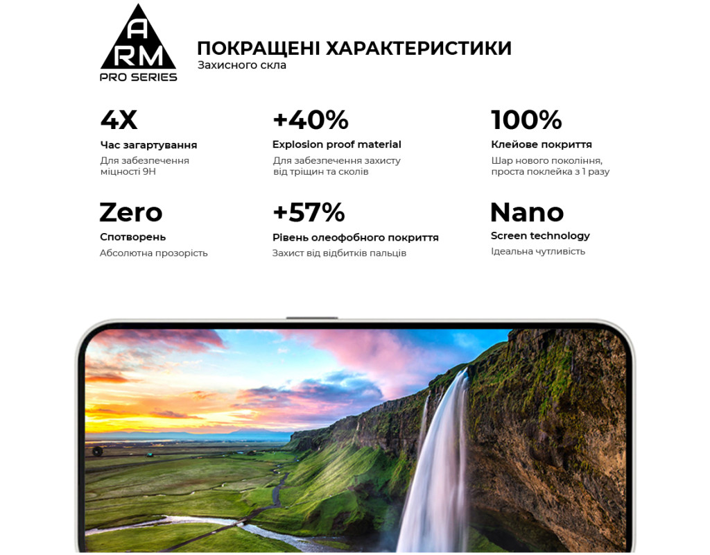 Захисне скло Armorstandart Pro Series - це абсолютно новий рівень захисту дисплея смартфона. У виробництві використовується матеріал Japenese Asahi Glass, який проходить загартування впродовж 4 годин. Це забезпечує ідеальну прозорість захисного покриття без спотворень зображення, а також потужний захист від тріщин і подряпин. Скло ніяк не впливає на чуйність тачскрина. У ньому міститься спеціальний матеріал, що перешкоджає появі відколів. Верхня частина скла містить покращене олеофобне й гідрофобне покриття. Під час використання скла це забезпечує природні тактильні відчуття - пальці легко ковзають по поверхні. Водночас зображення відбивається з автентичною яскравістю й чіткістю без спотворень. Задня частина по всій площі покрита клейовою основою нового покоління. Завдяки цьому досягається повний брак пухирців і можливість переклеювання скла в разі первісного нерівного встановлення. Захисне скло Armorstandart Pro Series має оптимальні габарити та товщину на 0.3 мм. Передбачено вирізи під усі датчики, камери та розʼєми. До комплекту входить усе потрібне для швидкого та комфортного встановлення. Особливості: