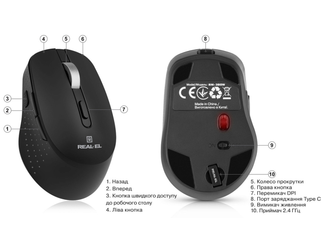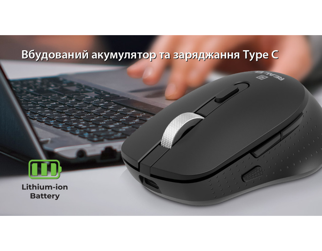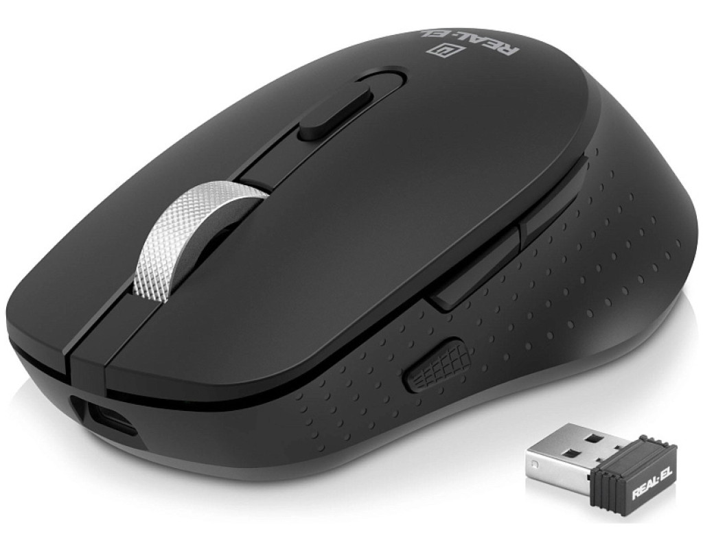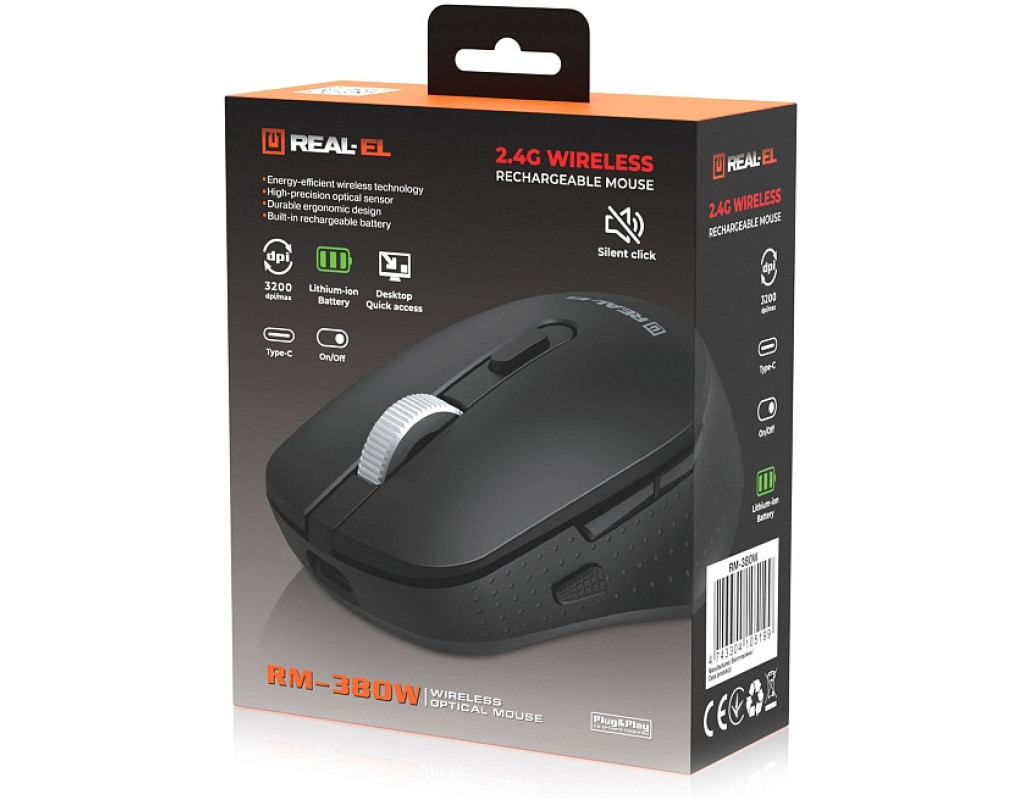 | Мишка REAL-EL RM-380W Wireless Black (EL123200057) — це універсальний пристрій, що об'єднує якість, стиль і функціональність для кожного користувача. Ця бездротова миша підходить для портативного використання та добре працює з ноутбуками завдяки своїм компактним розмірам і ергономічній формі. Її оптичний сенсор, що підтримує максимальну роздільну здатність 3200 dpi, забезпечує високоточне відстеження рухів, що дозволяє адаптувати чутливість курсора для різних завдань. REAL-EL RM-380W використовує сучасну бездротову технологію 2.4 ГГц з USB адаптером, що гарантує стабільне з'єднання без затримок на відстані до 10 метрів. Для додаткової зручності, мишка оснащена гнучким інтерфейсом, що дозволяє підключатися через USB Type-C. Це робить її ідеальною для багатозадачного використання у сучасному динамічному середовищі. Одним з основних переваг цієї моделі є безшумні кнопки, що забезпечують комфортну роботу без відволікаючих клацань, що особливо важливо в офісному оточенні або під час роботи вдома. Мишка має загалом 7 кнопок, включаючи спеціальну кнопку для швидкого доступу до робочого столу, що значно спрощує навігацію між відкритими вікнами та підвищує продуктивність. Для додання витонченого зовнішнього вигляду і довговічності, дизайн включає металеве колесо прокрутки, що забезпечує точну і приємну прокрутку. Вбудований акумулятор, що заряджається через USB-кабель, який йде у комплекті, робить цю мишку економічною та екологічно сприятливою, дозволяючи уникнути постійної заміни батарей. Легка (всього 90 г) і зручно лежить в руці, REAL-EL RM-380W стане незамінним гаджетом для тих, хто цінує комфорт і надійність, одночасно підкреслюючи свій індивідуальний стиль за рахунок елегантного чорного кольору корпусу. Це відмінний вибір для тих, хто шукає баланс між естетикою й технологічною досконалістю. |