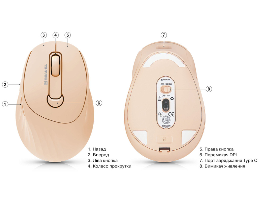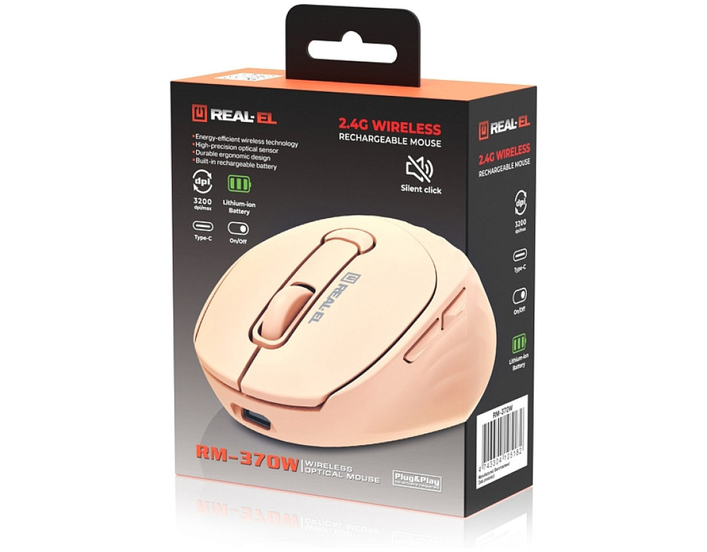 | Мишка REAL-EL RM-370W Wireless (EL123200056) - це ідеальне рішення для тих, хто цінує комфорт, точність та сучасні технології у компактному дизайні. Ця бездротова миша, виконана в елегантному бежевому кольорі, спеціально розроблена для зручної роботи з ноутбуком. Оснащена інтегрованою технологією підключення 2.4 ГГц, RM-370W забезпечує стабільний зв'язок без затримок на відстані до 10 метрів. Це дозволяє зосередитися на роботі чи навчанні без постійного переривання, підвищуючи вашу продуктивність. Інтерфейс підключення через USB Type-C та USB-адаптер гарантує універсальність та простоту у використанні з будь-якими сучасними пристроями. Основою високої точності миші є оптичний сенсор з максимальною роздільною здатністю 3200 dpi, що дозволяє легко регулювати чутливість курсора під різноманітні завдання. Незалежно від того, пишете ви електронний лист або редагуєте складний графічний проект, RM-370W забезпечує плавне та точне відстеження рухів. Завдяки ергономічній формі корпусу та приємному на дотик покриттю, RM-370W сприяє природному положенню руки, зменшуючи втому навіть під час тривалого використання. Легка вага у 65 грамів робить цей пристрій ідеальним компаньйоном для подорожей. Особливо цінним є безшумні бокові кнопки, які дозволяють працювати в офісі, бібліотеці або вдома, не турбуючи оточуючих. Це забезпечує комфортне середовище для тривалих робочих сесій або навчання. Вбудований акумулятор забезпечує тривалий час автономної роботи, усуваючи необхідність у постійній заміні батарейок. Зарядити мишу можна через USB-кабель, що входить у комплект, забезпечуючи легкість та зручність у використанні. Рішення економити енергію та високий рівень ергономіки роблять REAL-EL RM-370W не лише функціональною, але й екологічною. Вибираючи цю мишу, ви отримуєте прилад, що відповідає найвищим стандартам якості та інновацій. |