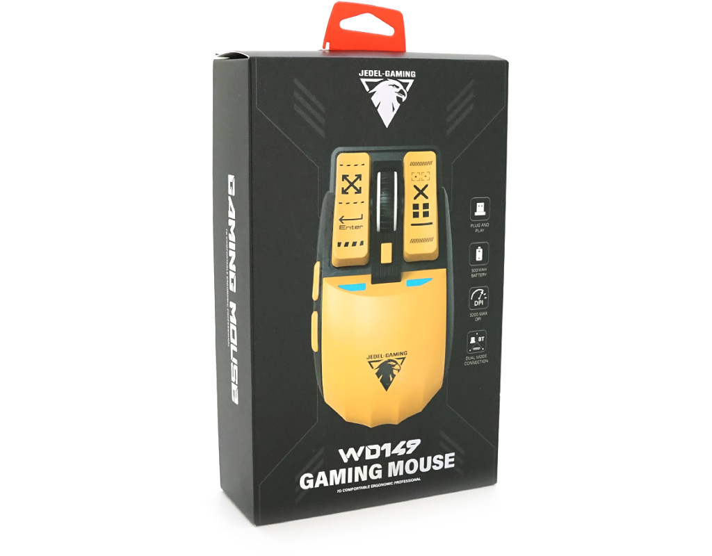 Миша бездротова JEDEL WD149, 3200DPI, 2.4GHZ+Bluetooth 5.0, Black / Yellow, Box