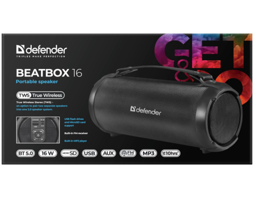 | Акустична система Defender Beatbox 16 Black (65216) ― це еталон стилю та функціональності, втілений у легкому та компактному корпусі. Це портативні колонки, які ви можете взяти з собою будь-куди, щоб насолоджуватися улюбленою музикою у високій якості незалежно від обстановки. Завдяки своєму потужному звучанню в 16 Вт і бездротовому підключенню через Bluetooth 5.3, Beatbox 16 стає незамінним компаньйоном для тих, хто цінує свободу та відмінний звук. Система підтримує сучасні інтерфейси, такі як microUSB, Micro SD, USB, що дозволяє легко відтворювати треки з різних носіїв інформації. У комплекті є також роз'єми mini Jack 3.5 mm та AUX, які забезпечують універсальність і зручність у використанні. Це справжня полична акустична система з можливістю об'єднання в 2.0 канальну систему через функцію True Wireless Stereo (TWS), що перетворює будь-яку подію на справжню вечірку. Ергономічний дизайн із гумовим та тканинним корпусом не тільки додає стійкості та приємних тактильних відчуттів, а й підвищує захищеність системи від пошкоджень. Вбудований літій-іонний акумулятор, що забезпечує до 10 годин автономної роботи на середній гучності, робить Beatbox 16 ідеальним вибором для далеких поїздок або довгих зустрічей на природі. Швидке поповнення заряду через Micro-USB означає, що ви завжди будете в ритмі вашого дня. Портативна акустична система Defender Beatbox створена для справжніх меломанів. Зручна ручка для перенесення та гумові ніжки для надійної фіксації на будь-яких поверхнях роблять її ще більш привабливою. Вбудований MP3-плеєр дозволяє насолоджуватися музикою без додаткових гаджетів, а вбудований FM-приймач допоможе налаштуватися на потрібну радіохвилю в будь-якому місці. Особливо варто підкреслити, що ви можете підключити цю систему до смартфона, планшета, ПК, ігрової консолі чи навіть телевізора, завдяки чому ваші мультимедійні розваги стануть ще більш насиченими та різноманітними. Насолоджуйтеся музикою з акустичною системою Defender Beatbox 16 Black, і вона стане невід'ємною частиною ваших найкращих моментів. Це більше ніж просто колонки – це ваш особистий центр розваг у сучасному світі. |