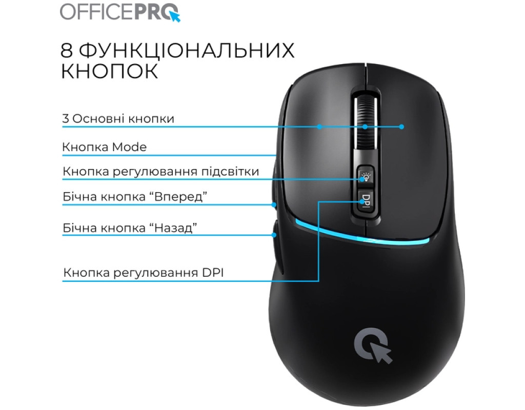 | Мишка OfficePro M468B Wireless/Bluetooth Black (M468B) — це поєднання інновацій та зручності для тих, хто цінує якість та продуктивність. Цей пристрій стане вашим незамінним супутником як у робочих буднях, так і в годинах відпочинку при грі. Універсальність підключення і стабільність роботи роблять OfficePro M468B ідеальним вибором для сучасних користувачів. З підтримкою двох режимів підключення — USB адаптер 2.4 ГГц і Bluetooth — ви зможете легко підключити її до комп’ютера, ноутбука, планшета чи іншого гаджета. Бездротове з’єднання забезпечує надійність без затримок, що є важливим як для роботи, так і для ігрових баталій. Функціональність миші OfficePro M468B задовольнить потреби найвибагливіших користувачів. Вона оснащена вісьмома програмованими кнопками, які ви можете налаштувати під свої індивідуальні вимоги, що суттєво оптимізує процес роботи або гри. А завдяки роздільній здатності до 4800 DPI і оптичному датчику, ви отримаєте точність і контроль над кожним рухом. Безшумна конфігурація перемикачів Silent Click забезпечує тиху роботу, що ідеально підходить для офісних приміщень або вечірньої діяльності без створення дискомфорту для оточуючих. Ця особливість робить мишу чудовим вибором для місць, де тиша є необхідною. Одна з головних переваг - довготривала автономність. Вбудований акумулятор ємністю 500 мА*год дозволяє користуватися мишею без частих підзарядок, забезпечуючи надійність протягом усього робочого дня. Ергономічний дизайн, вага всього 65 грамів і зручна форма забезпечують комфортне користування протягом тривалого часу. OfficePro M468B ідеально лягає в руку, зменшуючи втому і підвищуючи ефективність. Ця мишка чудово підходить для геймерів, її часто обирають для таких ігор, як World of Tanks. Завдяки підсвічуванню, ви з легкістю відчуєте атмосферу гри і насолодитеся кожною миттю. З OfficePro M468B ви отримуєте не просто мишу, а справжнього помічника для виконання будь-яких завдань з високою точністю і бездоганною ефективністю. Цей товар поєднує в собі технологічність, комфорт і стиль, що робить його вдалим вибором для будь-якого користувача. |