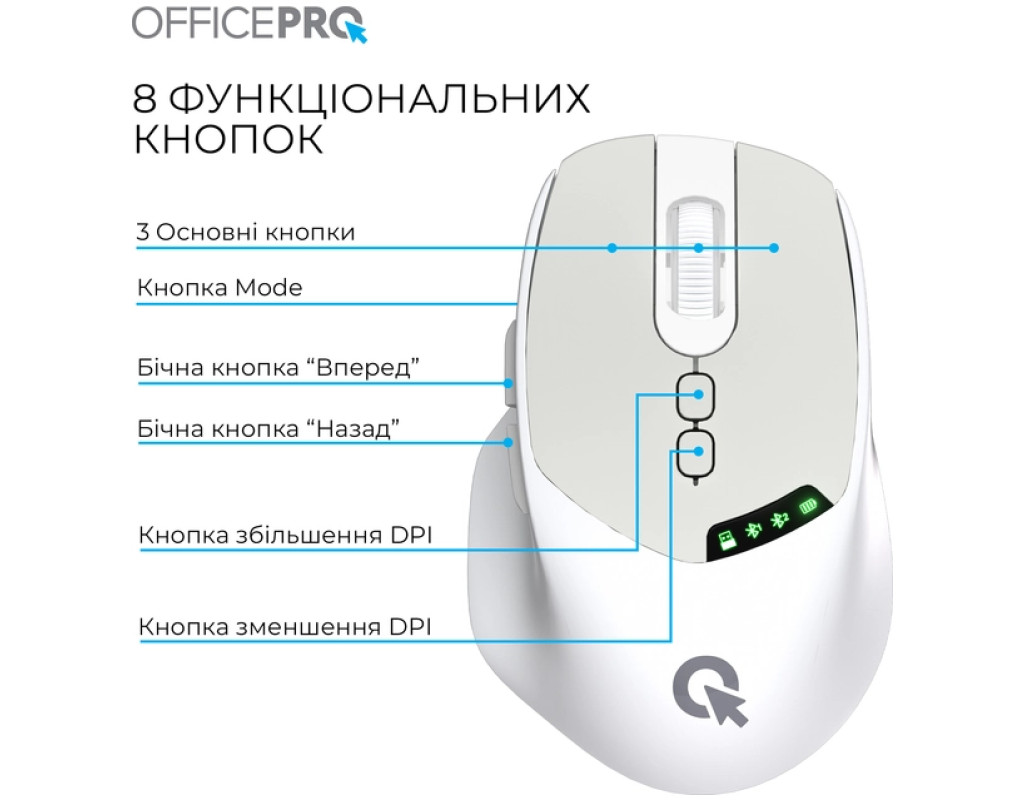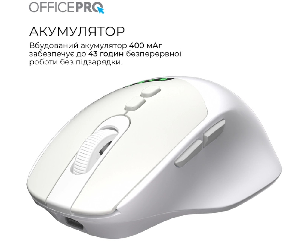 | Мишка OfficePro M520W Wireless/Bluetooth White (M520W) - це ідеальне поєднання технологій, комфорту та елегантності. Завдяки своїй бездротовій конструкції та підтримці двох режимів підключення (2.4 ГГц USB адаптер і Bluetooth), цей аксесуар забезпечує універсальність використання як для ноутбука, так і для інших гаджетів. Це дозволяє легко перемикатися між пристроями без жодних затримок, що робить вашу роботу максимально продуктивною. Однією з ключових переваг є бездротовий та безшумний дизайн цієї миші. Завдяки Silent Click перемикачам ви можете працювати вдома, в офісі або в бібліотеці без зайвого шуму, забезпечуючи комфорт вам і тим, хто поряд. Ергономічна форма миші розроблена так, щоб максимально знизити втому рук навіть при довготривалій роботі. Функціонал миші справді вражає: вона оснащена оптичним датчиком з максимальною роздільною здатністю 4800 dpi, що гарантує високу точність рухів на будь-якій поверхні. Ще однією істотною особливістю є вісім програмованих кнопок, які розширюють можливості персоналізації управління, дозволяючи вам налаштувати мишу під свої потреби та оптимізувати робочий процес. Інтелектуальний LED-дисплей миші інформує про активний режим підключення та рівень заряду, що додає зручності у використанні. Заряджається вона через вбудований акумулятор, що означає відсутність потреби у частих замінах батарей та забезпечує довготривалу автономність навіть при активному використанні. Ємність 400 мАгод дозволяє безперервно працювати тривалий час. Завдяки своєму стильному білому кольору та вишуканому дизайну, OfficePro M520W не тільки органічно вписується в будь-який інтер'єр, але й служить чудовим доповненням до сучасних гаджетів. Миша важить лише 81 г, що робить її легкою та зручною для транспортування. Без сумніву, OfficePro M520W Wireless/Bluetooth White стане надійним партнером у вашій щоденній роботі, адже вона об'єднує якість, ефективність та практичність, задовольняючи найвибагливіші вимоги користувачів. Це не просто миша - це ваш вірний помічник у вирішенні найскладніших завдань. |