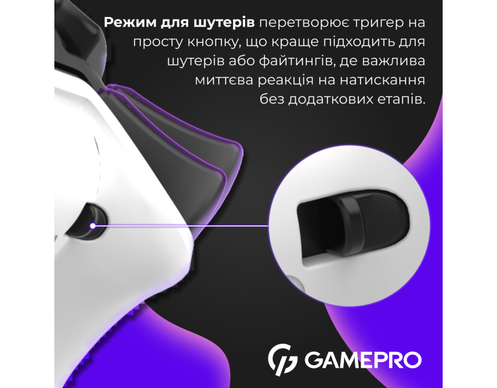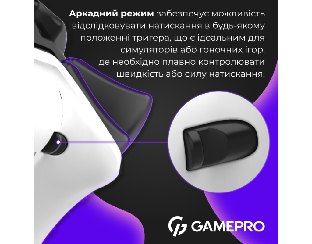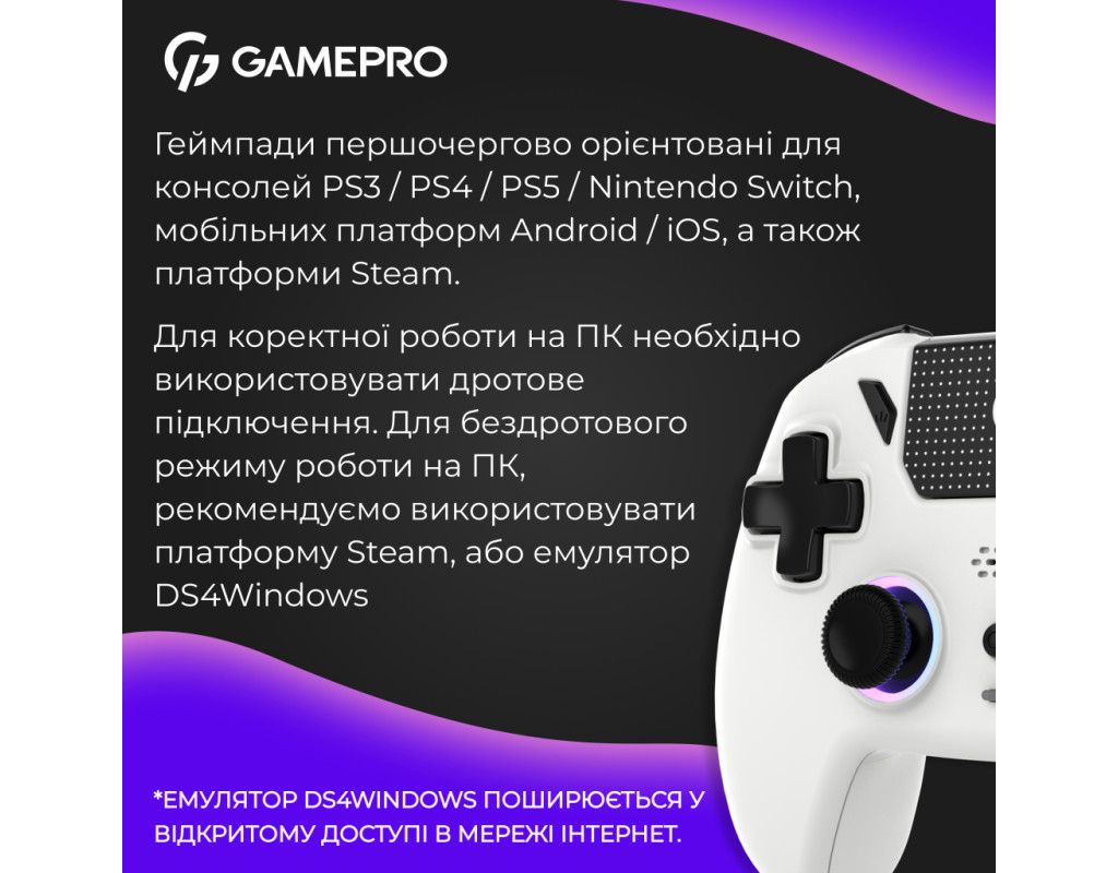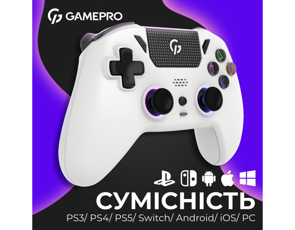 Незалежно від того, яку платформу ви оберете, GamePro GPS20 гарантує стабільність, точність і комфорт. Цей геймпад не просто адаптується під вас — він створений, щоб ви перемагали. |