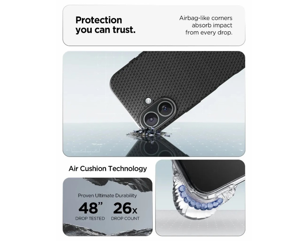 | Чохол Spigen Liquid Air для iPhone 17 (ACS10369) — це легкий захисний аксесуар у матово-чорному кольорі, виготовлений із амортизованого термополіуретану (TPU). Технологія Air Cushion забезпечує захист від падінь, а підняті краї захищають екран і камеру. Геометричний візерунок із матовою обробкою додає стильний і стриманий вигляд. Ідеально підходить для власників iPhone 17, які цінують легкість, міцність і мінімалістичний дизайн. |