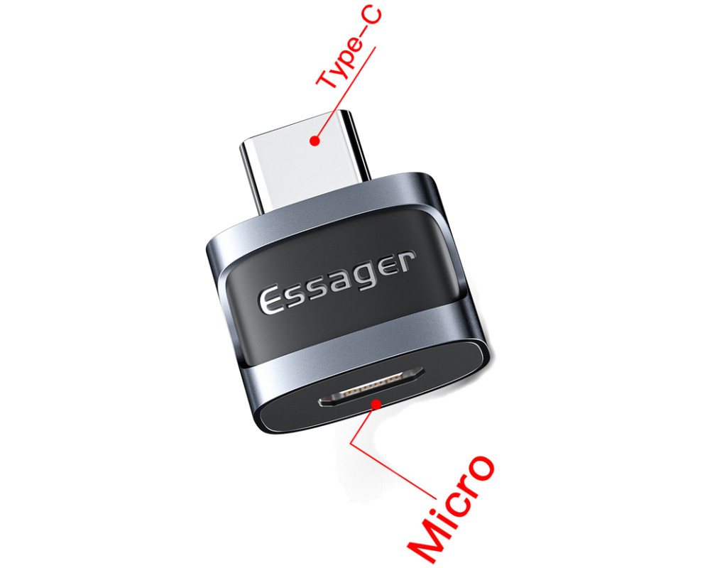 | Адаптер ESSAGER OTG Micro Female to Type-C — це функціональний пристрій для забезпечення сумісності різних пристроїв з роз'ємами Micro USB і Type-C. Він надає просте та зручне рішення для під'єднання пристроїв з різними інтерфейсами, дозволяючи вам максимально ефективно використовувати вашу техніку. Особливості: