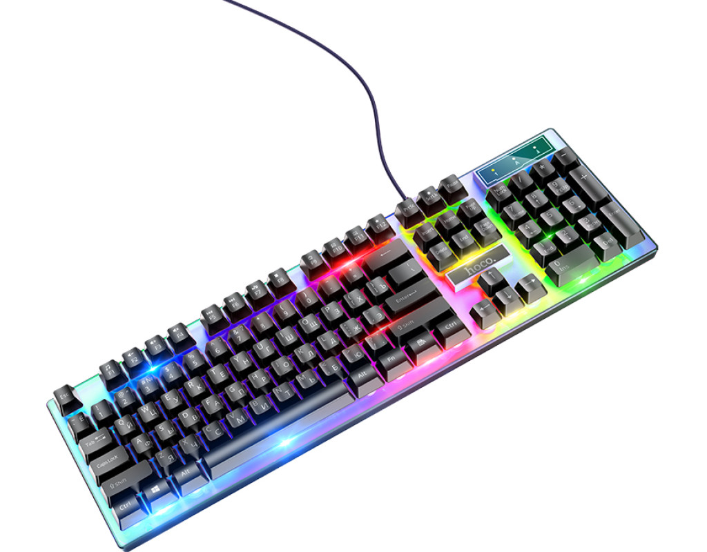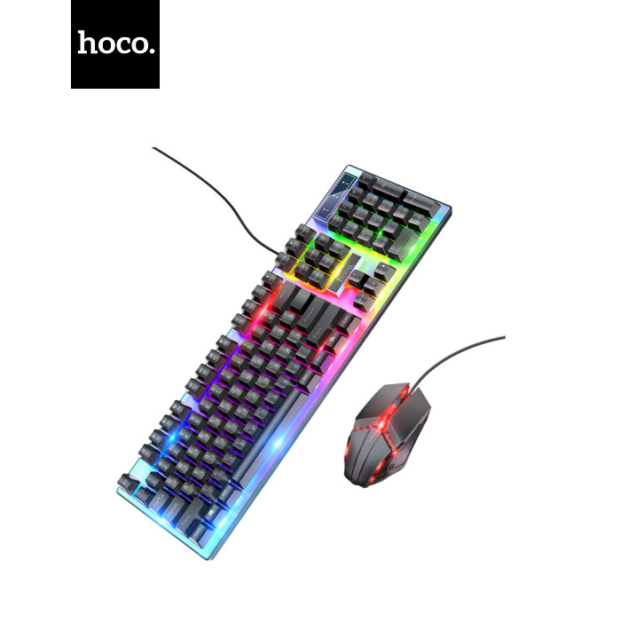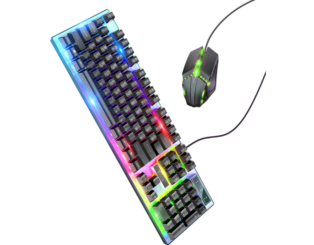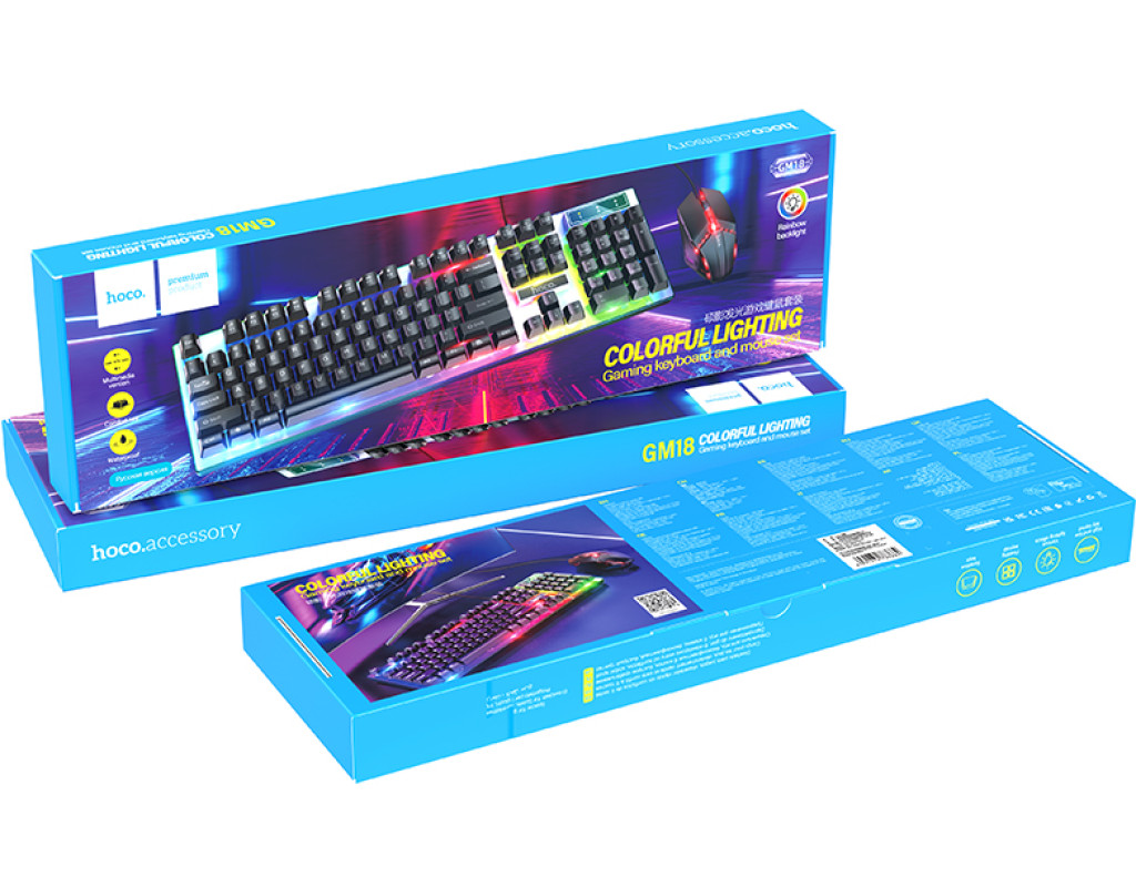 Комплект провідний KB+Mouse HOCO GM18, USB, RGB підсвічування, (Eng / Pyc), Black / White, Box