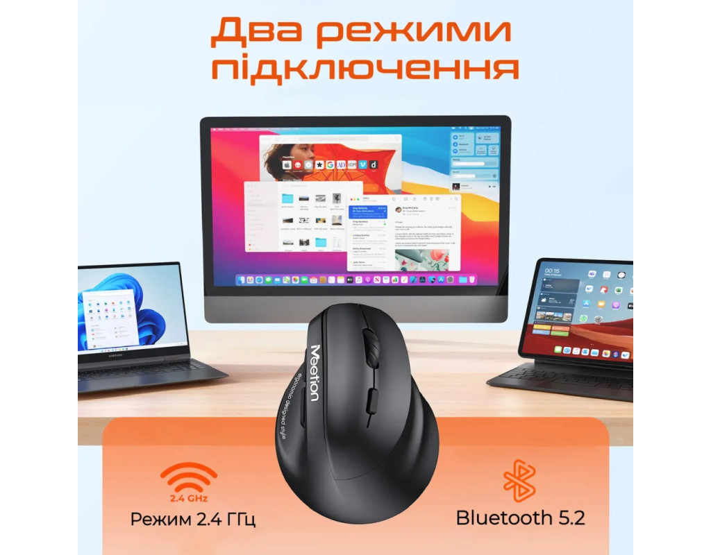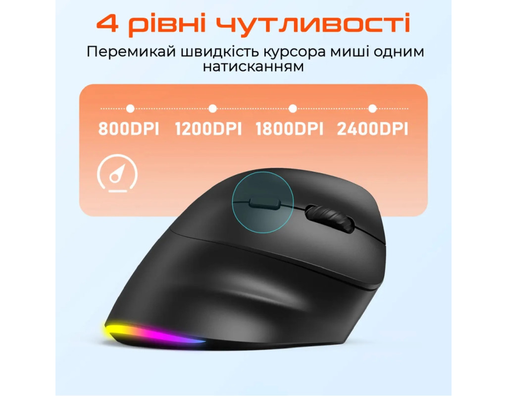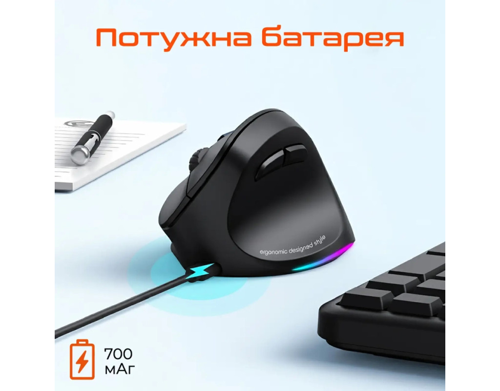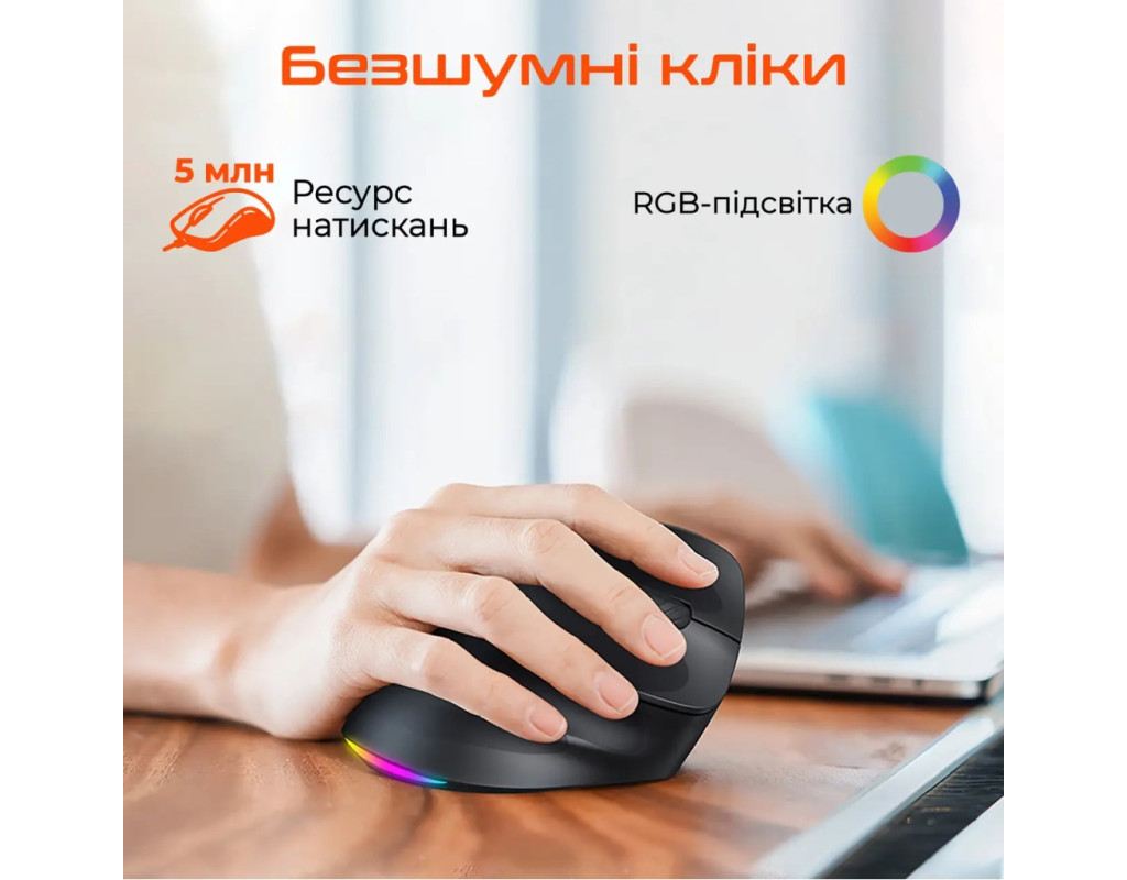 | Мишка Meetion BTM010R RGB Bluetooth/Wireless Black (MT-BTM010R-A) — це інноваційний інструмент для підвищення продуктивності та комфорту у вашій щоденній роботі. Її ергономічний вертикальний дизайн спеціально створений для оптимальної підтримки вашої руки, зменшуючи навантаження на зап’ястя. Це робить її ідеальним вибором для тих, хто проводить багато часу за комп’ютером. Бездротові можливості цієї мишки вражають. Два режими підключення — через Bluetooth 5.2 та 2.4 GHz USB адаптер — гарантують стабільне, надійне з'єднання без прив’язки до одного USB-порту. Сенсор мишки є оптичним з роздільною здатністю до 2400 dpi, що дозволяє точно налаштувати швидкість курсора для оптимального контролю. Додатковою перевагою є тихі кліки, що роблять її використання комфортним у тихих середовищах, таких як офіс або бібліотека. Кожна кнопка витримує до 5 мільйонів натискань, забезпечуючи довговічність і надійність. RGB-підсвічування — це ще один стильний аспект цієї мишки. Воно автоматично змінює кольори, створюючи атмосферу, яка підходить вашому настрою, а тривале натискання dpi-кнопки легко вимикає його при необхідності. Живлення забезпечує потужний акумулятор ємністю 700 мА*год, що забезпечує тривалу автономну роботу. Завдяки інтерфейсу зарядки Type-C, її підзарядка швидка і зручна. Не забуваймо також про практичні бокові кнопки, що додають функціональності при серфінгу в інтернеті або під час ігор. Мишка легка і компактна, вагою всього 104 г, вона легко підходить навіть для перевезення в сумці або рюкзаку. З Meetion BTM010R ви отримуєте не лише прилад, а й елегантне і високотехнологічне рішення для професіоналів і геймерів. Її чорний колір додає класичності і строгості вашому робочому столу. |