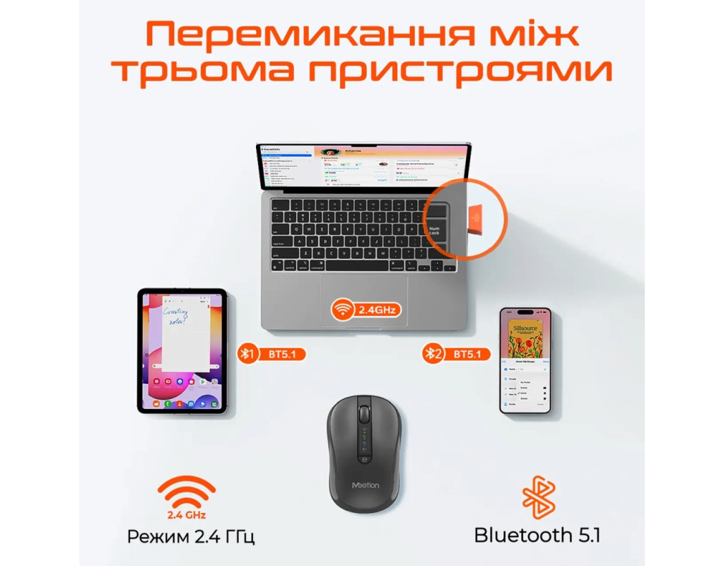 | Мишка Meetion BTM185 Bluetooth/Wireless Black (MT-BTM185-A) — це ідеальне поєднання стилю, функціональності та технологій, адаптоване для сучасних користувачів. Завдяки безшумним клавішам, ви зможете працювати в затишній атмосфері, не турбуючи оточуючих. Ця мишка заснована на передових технологіях, які забезпечують тишу та комфорт під час кожного кліку. Один з унікальних аспектів Meetion BTM185 — це можливість одночасно працювати з трьома пристроями, швидко перемикаючись між ними за допомогою однієї кнопки. Це досягається завдяки підтримці Bluetooth 5.1 та 2.4 GHz USB адаптера, що забезпечують стабільне підключення на відстані до 10 метрів. П'ять рівнів чутливості від 800 до 3200 dpi дозволяють легко налаштувати курсор під ваші потреби, незалежно від типу роботи чи розваг. Оптичний сенсор гарантує високу точність рухів на будь-якій поверхні. Мишка має енергозберігаючий режим з функцією режиму сну, що значно подовжує час роботи від однієї батареї формату AA. Інноваційний індикатор рівня заряду допоможе вам завжди залишатися готовими до роботи, а вага у 66 г забезпечує легкість та зручність використання. Meetion BTM185 має ергономічний дизайн, який підходить для правої та лівої руки, що робить її універсальним вибором. Компактні розміри (68.8 x 39.5 x 106.8 мм) роблять цей пристрій ідеальним супутником в подорожах, а стильний чорний колір додає елегантності. Ця мишка заснована на принципі Plug & Play: не потребує встановлення додаткового програмного забезпечення, працюючи з Windows та macOS через простий USB порт. Нано-приймач легко зберігається в корпусі миші, економлячи простір та час. Комплектація включає мишу, USB нано-приймач та інструкцію користувача, дозволяючи вам негайно розпочати з нею роботу. Оберіть Meetion BTM185 і насолоджуйтеся досконалою якістю та функціональністю за доступною ціною. |