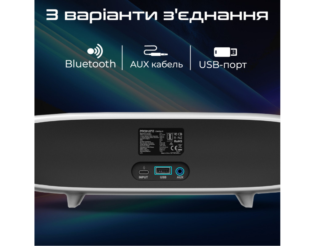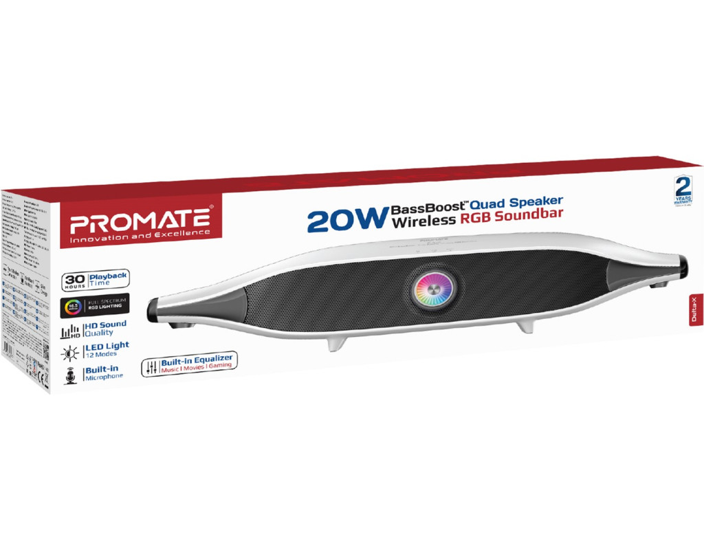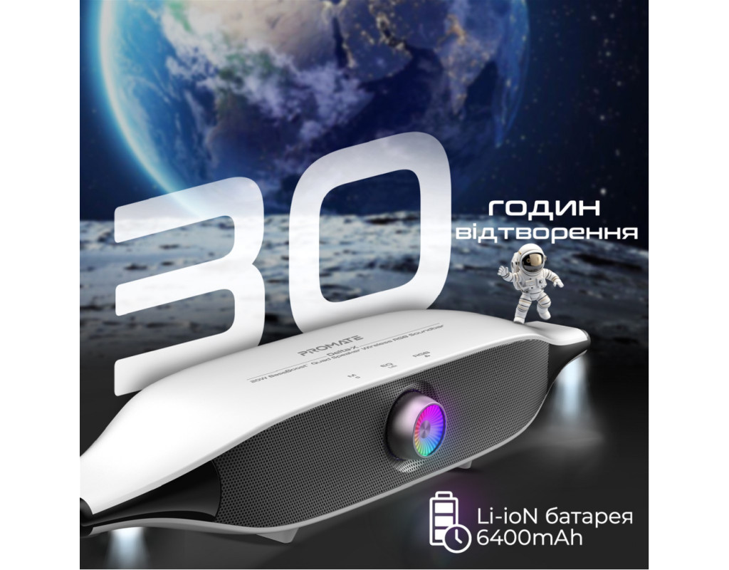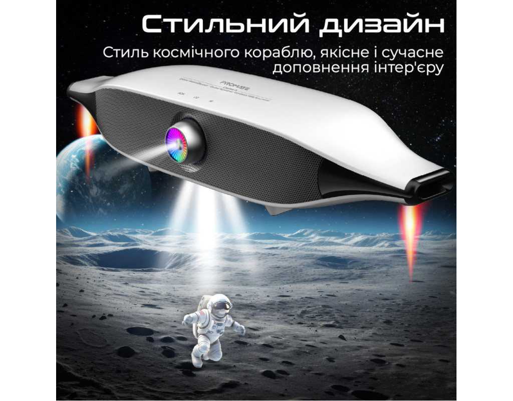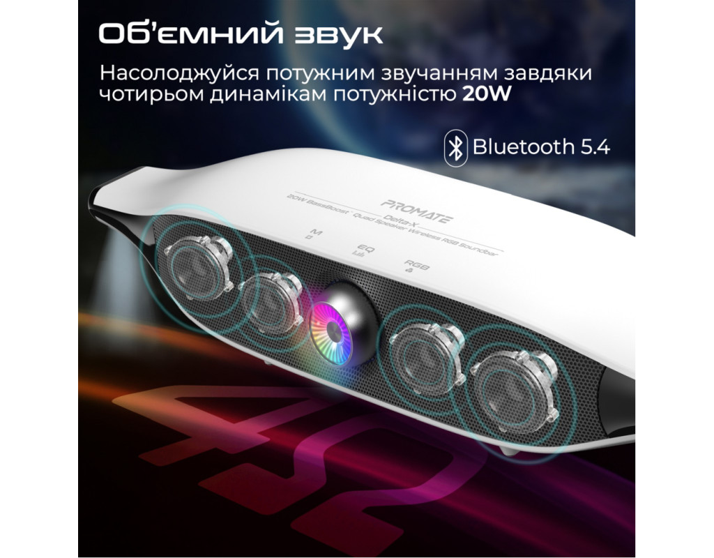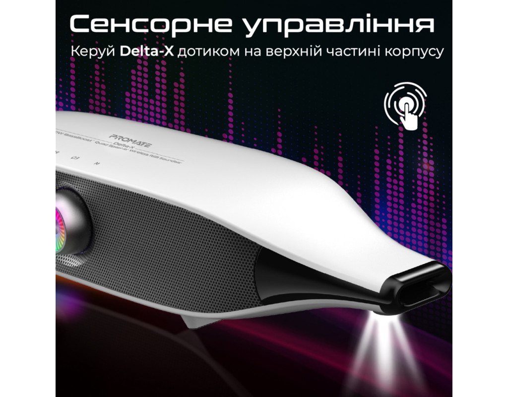 | Акустична система Promate Delta-X 20W White (delta-x.white) — це поєднання інноваційних технологій і сучасного дизайну, що робить її ідеальним вибором для тих, хто цінує якісний звук і стильну естетику. Цей саундбар розроблений, щоб забезпечити вам потужний та об'ємний звук, завдяки технології BassBoost, яка підсилює баси та додає глибину вашим улюбленим трекам. Завдяки потужності 20W, ця система забезпечує чітке відтворення звуку навіть на високих рівнях гучності. Використовуючи Bluetooth 5.4, ви отримаєте стабільне з'єднання і зменшене енергоспоживання, а функція TWS дозволяє підключити одночасно дві колоноки для створення справжнього стерео ефекту. Ви можете обрати один із трьох режимів EQ (Музика, Кіно, Ігри), щоб налаштувати звук під ваші поточні потреби. Саундбар підтримує кілька варіантів підключення: Bluetooth, 3.5 мм AUX і USB, що дозволяє легко інтегрувати його з вашим телевізором, ПК чи смартфоном. Вбудований Li-ion акумулятор на 6400 mAh забезпечує до 30 годин відтворення без підсвічування і 20 годин — з активованою RGB підсвіткою, яка дозволяє створити унікальну атмосферу з вибором із 12 режимів світіння. <б>Сенсорне управлінняб> розташоване на верхній частині корпусу робить керування системою зручним та інтуїтивним. Корпус із пластику виконаний у стильному, мінімалістичному дизайні, що нагадує космічний корабель. Це модне рішення для вашого інтер'єру, яке не тільки прикрасить простір, але й забезпечить фантастичне звучання. З Promate Delta-X 20W ви отримуєте більше, ніж просто звукову систему — це двері у світ музичних відчуттів та унікальної атмосфери, доступної завдяки сучасним технологіям і неперевершеній якості. |