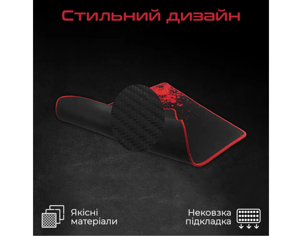 - Якісні матеріали: Високоякісна гумова основа та тканинна поверхня захистять від плям, протирання та розривів, а також дасть змогу точно та швидко рухати мишкою