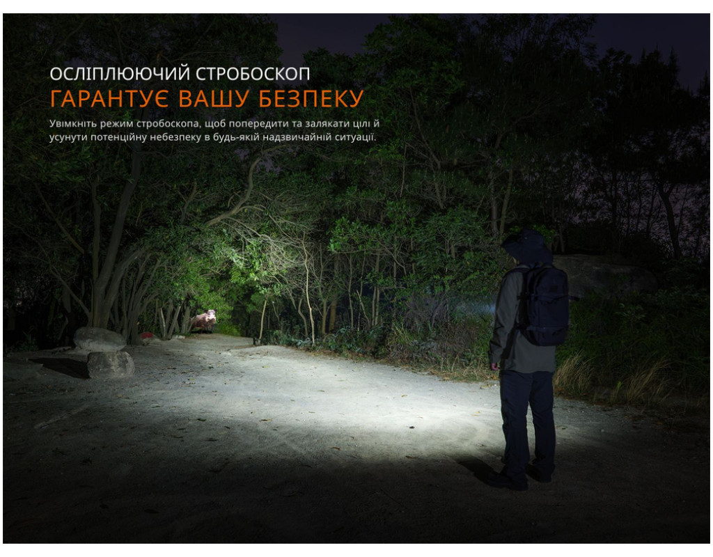 | Ліхтар Fenix LD36RFC вогняний камуфляж (LD36RFC) є справжньою знахідкою для тих, хто цінує високу якість та багатофункціональність. Цей багатоцільовий ліхтар розроблений спеціально для тих, хто шукає надійний і потужний інструмент для освітлення у будь-яких умовах. Завдяки поєднанню ручного джерела освітлення та кольорового прожектора, він підходить як для щоденного використання, так і для фото- та відеозйомок. Під лінзою із загартованого скла розташовані 6 випромінювачів, включаючи три потужні світлодіоди Luminus SFT25R Gen2 (6500К) та три RGB-діоди, що забезпечують 6 кольорових відтінків світла. Це дозволяє налаштовувати освітлення відповідно до настрою та вимог контенту. Вражаючий термін служби кожного діода складає до 50 000 годин, що свідчить про довговічність та надійність. Ліхтар має унікальний дифузійний фільтр AOD-04, який перетворює спрямований промінь на розсіяне світло, освітлюючи простір на 360°, що створює максимально комфортні умови для будь-якої діяльності. Завдяки 14 варіантам освітлення, ви можете вибрати найкращий режим під конкретні потреби завдяки розділенню режимів на білі та кольорові групи. У режимі турбо Fenix LD36RFC здатний видавати до 3600 люмен з дальністю світла до 385 метрів. Інші режими пропонують різну яскравість та тривалість роботи, що забезпечує оптимальне використання в різних ситуаціях. Особлива увага приділена безпеці, включаючи інтелектуальний захист від перегрівання та захист від зворотної полярності, що робить ліхтар надзвичайно надійним інструментом. Ліхтар живиться від акумулятора ARB-L21-6000, який забезпечує до 65 годин автономної роботи. Швидке заряджання від вологозахищеного порту USB-C займає лише 3,5 години. Кольоровий індикатор під зарядним портом повідомляє про поточний рівень заряду батареї, що дозволяє контролювати процес зарядки. Корпус ліхтаря виконано зі сплаву алюмінію A6061-T6, відзначеного високою стійкістю до корозії та механічних пошкоджень. Завдяки стандарту захисту IP68, він витримує падіння з висоти до 1 метра і може працювати навіть під водою, що робить його ідеальним вибором для екстремальних умов. Компактний розмір (139,6 мм завдовжки) і вага (231 г) роблять Fenix LD36RFC зручним для транспортування. У комплекті йдуть зручна знімна кліпса, чохол, темляк, а також різьблення 1/4'' для кріплення на штативі, що дозволяє використовувати ліхтар у різних ситуаціях, включаючи закріплення на сумку або рюкзак. Саме поєднання інноваційних технологій, високоякісних матеріалів та відмінних експлуатаційних характеристик робить ліхтар Fenix LD36RFC у стані "вогняний камуфляж" надійним компаньйоном для будь-яких завдань. |