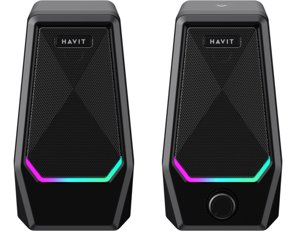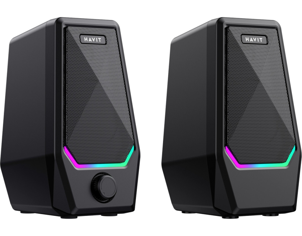 Стерео колонки HAVIT SK768 USB 10W з підсвіткою. Це компактні колонки, призначені для підключення до комп'ютера, ноутбука чи іншого пристрою. Для підключення колонок до пристрою використовуйте кабель зі штекером AUX (3.5мм), а для подачі живлення та роботи підсвітки необхідно підключити USB кабель у відповідний USB порт пристрою, до мережевого адаптеру чи навіть повербанку, якщо ви перебуваєте в місці де немає розетки чи мережі. Довжина кабелю складає 1,2м. Потужність акустичної системи складає 10W (по 5W кожна колонка). Колонки оснащені RGB підсвіткою, яка доповнює стиль та створює приємну атмосферу, керування підсвіткою здійснюється за допомогою сенсорної кнопки, яка розташована на верхній частині корпусу. Регулятор гучності на передній частині дозволяє зручно та швидко відрегулювати рівень звучання. Вони не займуть багато місця на робочому столі і впишуться в будь-який інтер'єр завдяки стильному дизайну. Габаритні розміри колонки складають 176х106х96мм кожна. Корпус виконаний з надійного та міцного пластику. При перегляді фільмів чи при прослуховуванні музики ви відчуєте приємне та досить потужне звучання, адже вони добре передають, як високі так і низькі частоти (бас). |