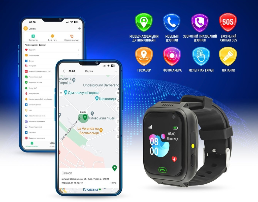 Дитячий смартгодинник GARMIX PointPRO-100, здатний не тільки повністю замінити собою смартфон, але й так само надати більше корисних функцій. Вбудований WiFi Для більш точного позиціювання годинника, самостійно підключається до найближчої точки доступу WiFi. Працює повністю автоматично, не підключається вручну. Дзвінки з годинника і на годинник Дзвоніть як на звичайний смартфон, дитина так само може вам зателефонувати в будь-яку хвилину. Повна відсутність небажаних дзвінків Дзвонити на годинник можуть тільки прописані батьками номери, з годинника так само можна дзвонити тільки на номери з телефонної книги, яку формують батьки. Локація дитини онлайн Встановіть безкоштовну програму SeTracker2 у свій смартфон, пройдіть просту реєстрацію і на карті в реальному часі відобразиться місцеперебування дитини з годинником. Зворотний дзвінок Ви можете приховано зателефонувати на годинник, й почути обстановку навколо дитини, чи вона знаходиться в школі на уроках, гуляє на майданчику з ровесниками. Миттєвий сигнал SOS При виникненні екстреної ситуації, дитина може миттєво відправити сигнал тривоги батькам, затиснувши кнопку на корпусі. Геозони Ви можете встановити, у додатку територію, яку не повинна залишати дитина, а якщо це станеться, на смартфон батьків надійде повідомлення. Крім основних функцій безпеки GARMIX PointPRO-100, оснащені яскравою селфі-камерою та led-ліхтариком, має знімний браслет, який легко відрегулювати під дитячу руку будь-якого віку. Дитячий смартгодинник GARMIX PointPRO-100, позбавить батьків від переживань і забезпечить захист дитини від небажаних ситуацій! |