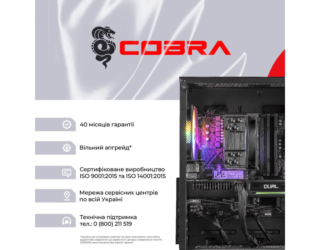 | COBRA поєднує в собі високу продуктивність, потужність і сучасні технології. Ультра графіка Топові відеокарти забезпечать максимальну, і безкомпромісну продуктивність в самих вимогливих іграх і додатках. Ігри в ультра настройках графіки - тепер ти зможеш побачити світ сучасних ігор очима розробників, оцінити їх так, як вони були задумані, а не миритися і підлаштовуватися. Топові процесори Старша лінійка процесорів - верх продуктивності і приємний запас для комфортної роботи з великими масивами даних, складними іграми, обробкою великих обсягів мульти-медіа контенту. Безпрецедентна потужність, і малий час відгуку разом з вбудованими засобами безпеки дозволяють працювати, грати і створювати контент так швидко і так ефективно, як ви захочете. Абсолютна міць твого ПК від COBRA Ігрові комп`ютери COBRA з максимальною конфігурацією зібрані спеціально для самих просунутих користувачів і вимогливих до якості графіки геймерів. Дана лінійка дозволить насолодитися ультра налаштуваннями графіки і максимальною роздільною здатністю в усіх сучасних іграх, зберігаючи максимально доступні показники FPS. Кращого просто не існує! ПК COBRA збираються на базі комплектуючих визнаних світових лідерів, таких як Intel, AMD, ASUS, MSI, Gigabyte, і ін. Професійна збірка комп`ютера COBRA забезпечить оптимальний повітряний потік всередині корпусу, а значить і відмінне охолодження всіх компонентів ПК. |