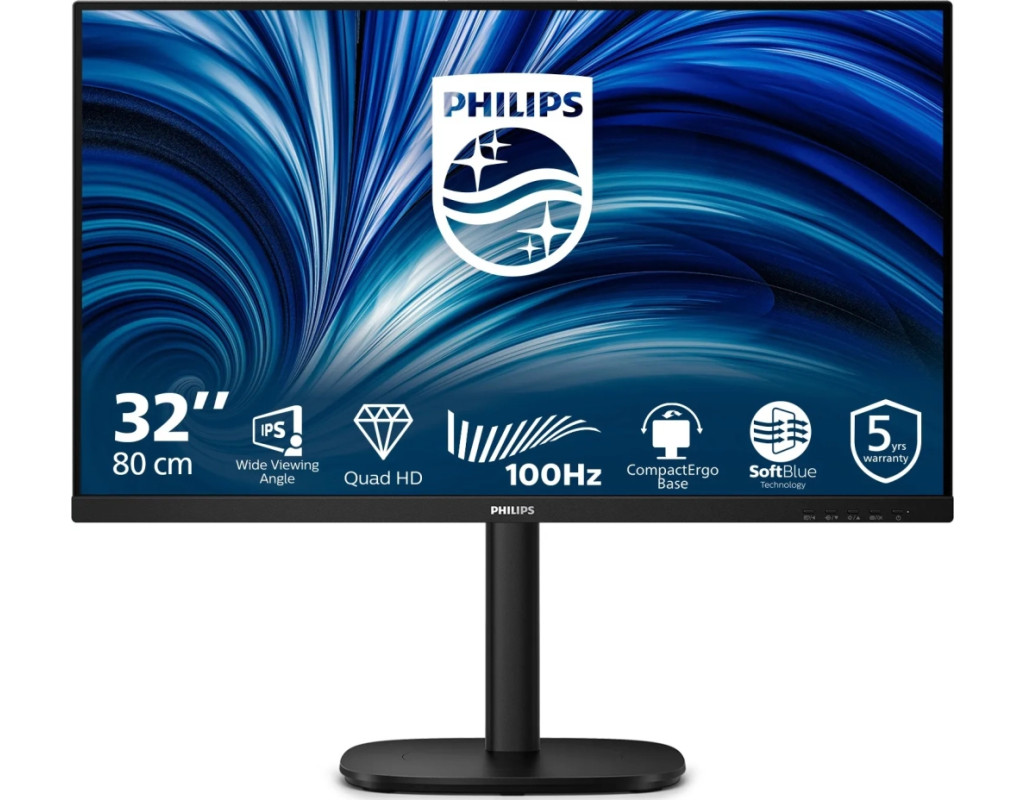 Philips 32B2N3500/00 — це універсальний офісний монітор, призначений для роботи, навчання та мультимедійних завдань. Він поєднує якісне зображення, ергономіку та енергоефективність, що робить його ідеальним для офісного чи домашнього використання. Монітор оснащений 31.5-дюймовою IPS-панеллю з роздільною здатністю Quad HD, що забезпечує чітке зображення з широкими кутами огляду (178°/178°). Яскравість становить 350 ніт, статична контрастність — 1000:1, що гарантує яскраві кольори та глибокі чорні відтінки. Покриття екрана матове, що зменшує відблиски. Час відгуку 4 мс (GtG) і частота оновлення 100 Гц забезпечують плавне відображення навіть під час динамічних ігор. Підтримка 113% sRGB і 102% NTSC забезпечує точну передачу кольорів, що підходить для базового редагування фото чи відео. Технологія Adaptive Sync усуває розриви зображення, що корисно для роботи з динамічним контентом. Світлодіодна технологія SoftBlue в поєднанні з панеллю монітора з низьким рівнем синього світла є ефективним рішенням для зменшення несприятливих наслідків для здоров’я, спричинених високим впливом синього світла. На цій панелі монітора співвідношення світла зменшується майже на 50 відсотків, а світлодіодна технологія SoftBlue працює одночасно, зменшуючи шкідливі промені синього світла, що випромінює екран. Світлодіодна технологія SoftBlue перевірена й сертифікована TUV Rheinland Eyesafe за ефективність зменшення випромінювання синього світла. У зв’язку з особливістю керування яскравістю на екранах зі світлодіодним підсвічуванням зображення може мерехтіти, що втомлює очі. Технологія без мерехтіння Philips застосовує нове рішення для регулювання яскравості та зменшення мерехтіння для більш комфортного перегляду. Для підключення доступні порти HDMI, DisplayPort, USB-A, USB-B та 3.5 мм аудіороз’єм. Вбудовані стереодинаміки (2x2 Вт) забезпечують базовий звук для відеоконференцій чи мультимедіа, але для якісного аудіо краще використовувати зовнішні колонки. Ергономічна підставка SmartErgoBase дозволяє регулювати висоту (до 180 мм), нахил (-5°/+30°), поворот (±90°) і обертання ±180°), забезпечуючи комфорт для різних сценаріїв використання. Підтримка VESA 100x100 мм дозволяє кріпити монітор на стіну чи кронштейн. Philips 32B2N3500/00 — це надійний монітор із точними кольорами та ергономічною підставкою, ідеальний для офісної роботи чи навчання. |