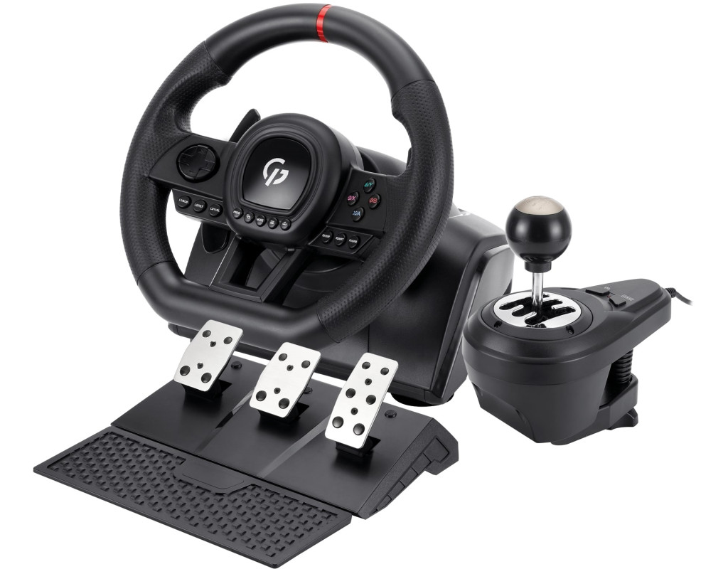 | Ігрове кермо GamePro RW038PM створене для справжніх любителів віртуальних перегонів. Воно підтримує шість основних ігрових платформ, включаючи PC, PS4, PS3, XBOX ONE та Nintendo Switch. Кермо має оптимальний кут повороту 270 градусів для комфортного керування у різних типах гоночних ігор. Два вібродвигуни передають реальні відчуття від дороги та зіткнень під час гри. Ергономічні гумові накладки забезпечують надійний хват і комфорт при тривалому використанні. У комплектацію входить механічна коробка передач з шістьма швидкостями і задньою передачею для реалістичного досвіду. Функція переналаштування кнопок дозволяє адаптувати керування під ваші індивідуальні потреби. Кермо має два режими роботи - X-input та D-input для ідеальної сумісності з різними іграми та пристроями. Трирівневе регулювання чутливості дозволяє точно налаштувати відгук керма під конкретну гру. Аудіороз’єм для навушників дає змогу повністю зануритися в ігровий процес без зайвих перешкод. |