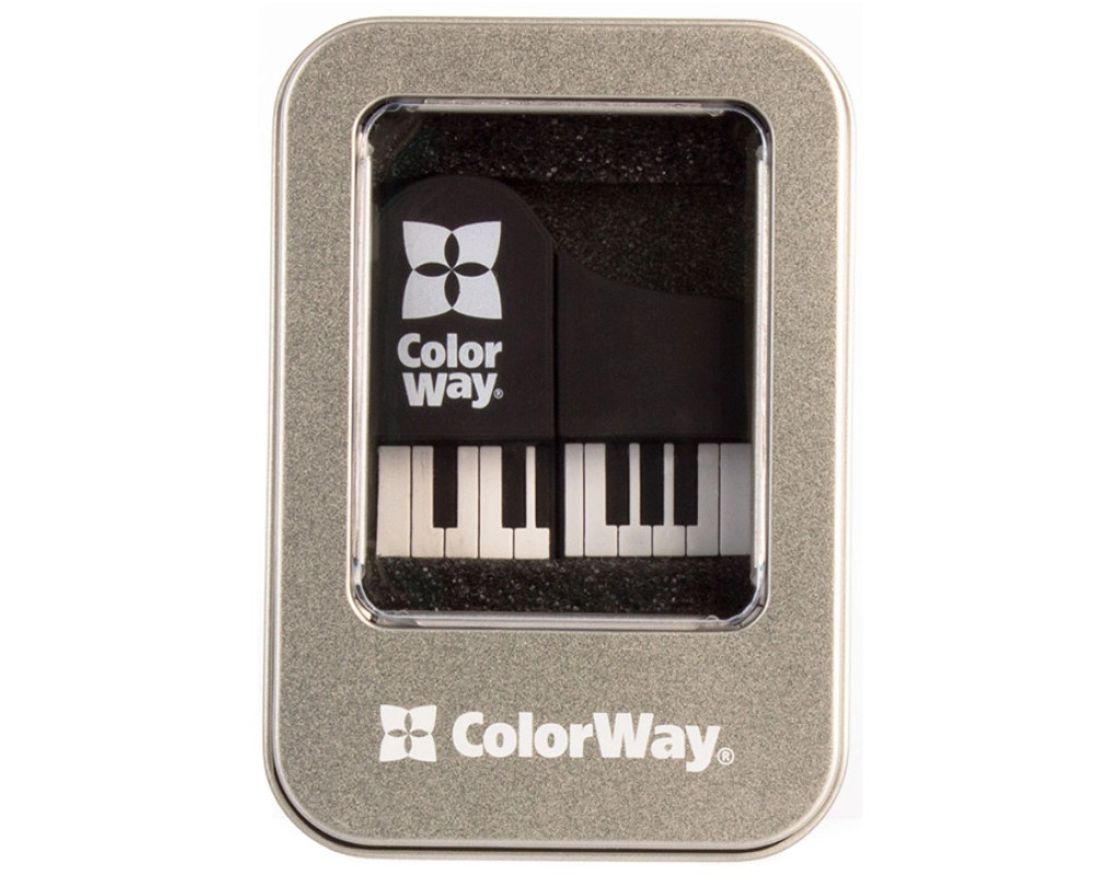 Флеш-накопичувач ColorWay Piano – стильний та оригінальний аксесуар для тих, хто цінує індивідуальність. Виконаний у формі мініатюрного рояля, він поєднує практичність і креативний дизайн. М’який гумовий корпус приємний на дотик та захищає накопичувач від ударів і подряпин. Підтримує стандарт USB, сумісний з комп’ютерами, ноутбуками, ТВ та іншими пристроями.