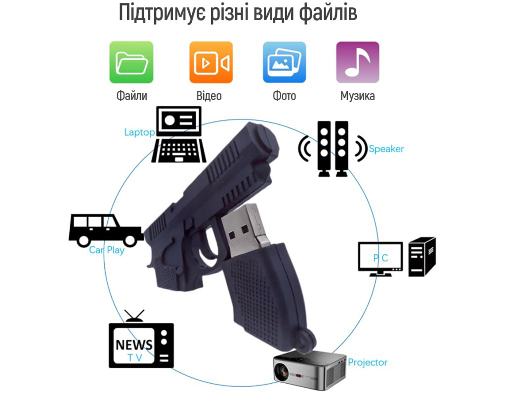 Шукаєш флешку, яка вирізняється з-поміж звичайних моделей? ColorWay Pistol — саме те, що треба! Її унікальний дизайн у формі пістолета одразу привертає увагу, а м’який силіконовий корпус приємний на дотик і захищає накопичувач від пилу, ударів та вологи. |