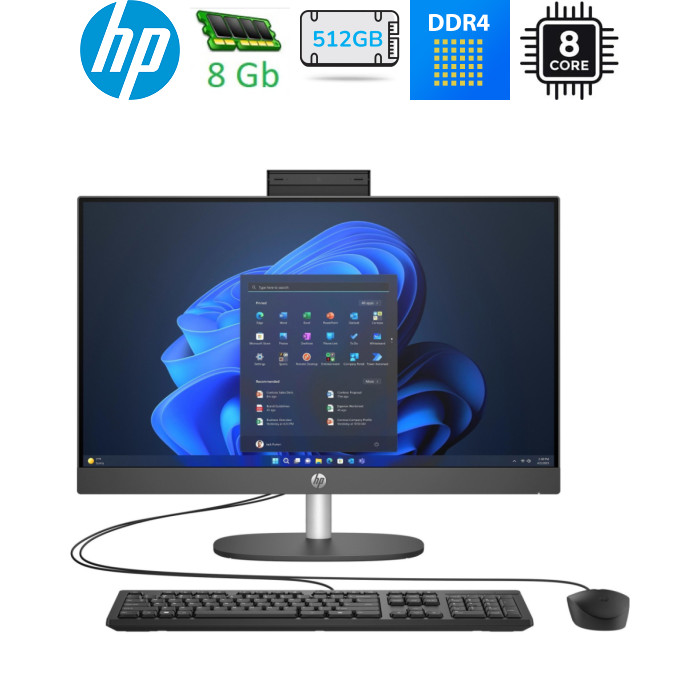 | HP 240 G10 (9M9M1AT) — моноблок чорного кольору з екраном 23.8" FHD IPS антибліковим покриттям роздільною здатністю 1920×1080 та яскравістю 250 ніт. Процесор Intel Core i3-N300 (8 ядер, базова частота 0.1 ГГц, турбо до 3.8 ГГц) з 8 ГБ DDR4 3200 МГц та SSD 512 ГБ M.2 PCIe NVMe забезпечує стабільну роботу в повсякденних задачах. Вбудована графіка Intel UHD Graphics, веб-камера 5 Мп з мікрофоном, клавіатура та миша в комплекті. Windows 11 Pro 64-bit встановлено, Wi-Fi 6 (Realtek 8852BE) та Bluetooth 5.3, вага 5.37 кг з VESA-кріпленням. Розміри 540.6 × 183.7 × 419 мм — компактний пристрій для робочого столу. |