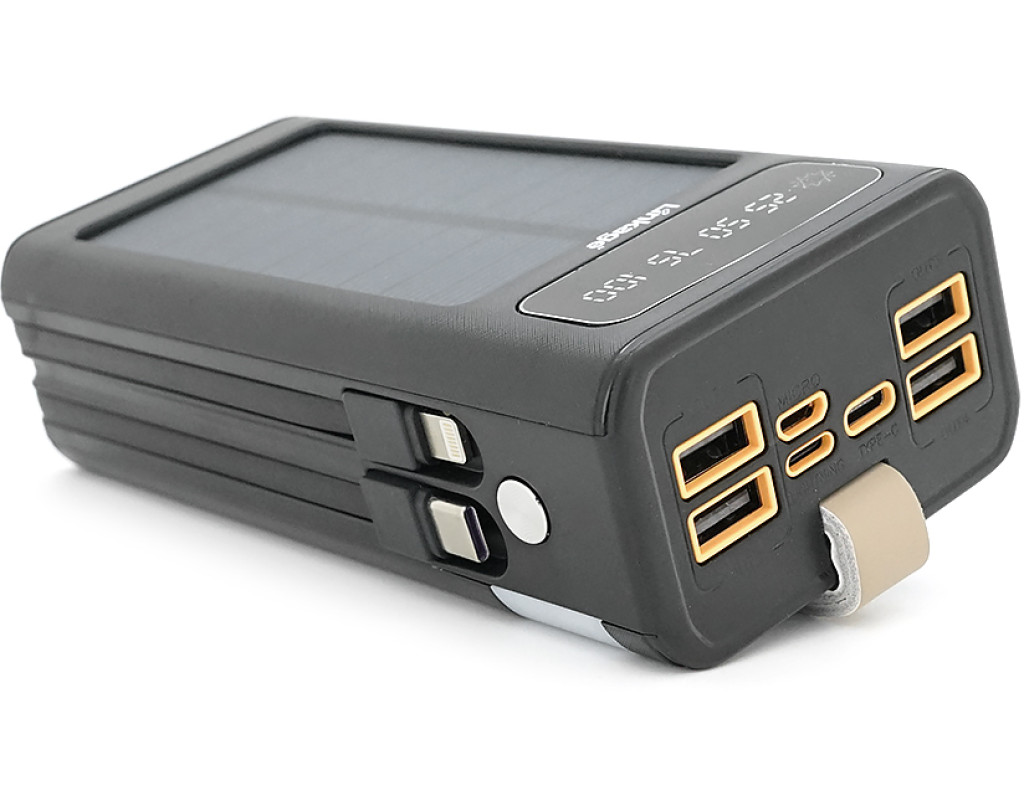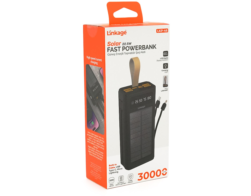 Power bank Linkage LKP-46, Solar 30000mAh, 22.5W, Кабелi Туре-С+Lighting, 0.70 kg, Black, Box
