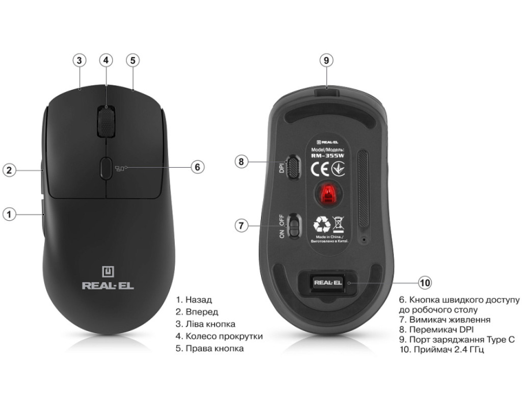 | Мишка REAL-EL RM-355W Wireless Black (EL123200054) - це поєднання класичного стилю і сучасної технології, спеціально розроблене для користувачів ноутбуків. Вона пропонує бездоганну якість функціонування з енергоефективним бездротовим підключенням на частоті 2.4 ГГц, що гарантує стабільну роботу на відстані до 10 метрів. Завдяки іноваційній технології, ви можете насолоджуватися чистим і впорядкованим робочим простором без зайвих кабелів, що забезпечує комфорт щоденного використання. В основі роботи мишки лежить високоточний оптичний сенсор, який забезпечує регульовану роздільну здатність 800, 1600, 2400 та 3200 dpi. Це дозволяє легко адаптувати чутливість для різних умов використання – від офісної роботи до мультимедійних завдань. Індикатор режиму dpi дозволяє швидко і інтуїтивно змінювати налаштування, що робить процес перемикання між різними режимами зручним і зрозумілим. Особливо виділяється функціональність кнопки Desktop Quick Access, яка полегшує навігацію серед численних програм і вікон, підвищуючи ефективність виконання завдань. Це рішення значно спрощує багатозадачність і оптимізує систему управління, роблячи роботу комфортнішою та швидшою, навіть при виконанні найскладніших завдань. Ергономічний дизайн миші REAL-EL RM-355W підлаштований під природну форму руки, зменшуючи втому і зберігаючи зручність при тривалому користуванні. Легкість пристрою у 73 грами і приємне покриття на дотик забезпечують максимальний комфорт і точний контроль під час робочих чи ігрових сесій. Забудьте про звичні батарейки завдяки вбудованому акумулятору, що забезпечує автономність роботи і легко заряджається через USB-кабель, який включений до комплектації. Це не лише зручно, але й економічно вигідно, дозволяючи користуватись мишкою без постійної заміни елементів живлення. Серед ключових особливостей REAL-EL RM-355W: енергоефективна бездротова технологія, високоточний сенсор з регулюванням dpi та індикацією, надійна ергономічна конструкція, далекобійність до 10 метрів, та акумулятор, що підлягає зарядці. Цей пристрій поєднує в собі всі сучасні вимоги до комфорту, продуктивності та естетики. |