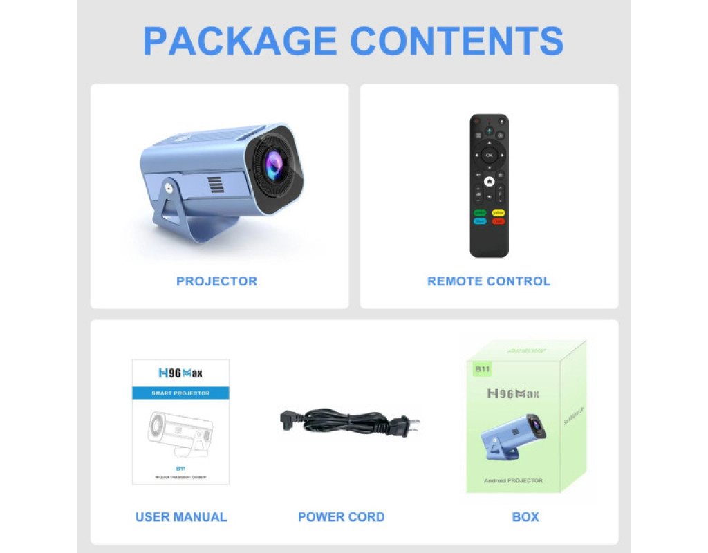 Проєктор H96 MAX B11 - портативний центр розваг нового покоління, який подарує яскраві враження від перегляду у будь-якому місці. Цей легкий та компактний проєктор поєднує в собі гнучкість, інтелектуальні функції та високу якість зображення. Він працює на основі потужного процесора Allwinner H716 та операційної системи Android 11, яка має інтуїтивно зрозумілий інтерфейс для доступу до безлічі програм. Технологія LCD TFT та LED-лампа з ресурсом до 30 000 годин забезпечують насичене зображення. Яскравість 200 ANSI люмен та нативна роздільна здатність HD гарантують виняткову чіткість та деталізацію контенту. Проєктор підтримує апаратне декодування форматів 4K (HEVC/VP9), що дозволяє відтворювати відео з високою деталізацією. H96 MAX B11 пропонує максимальну адаптивність – ергономічна конструкція підтримує обертання на 180 градусів, що робить його надзвичайно гнучким при користуванні. Проєктор відтворює зображення розміром до 60 дюймів із співвідношенням сторін 16:9 або 4:3 з відстані від 1 метра. Інтелектуальна система налаштування з автоматичною корекцією трапецеїдальних спотворень дозволяє отримати ідеально вирівняне та чітке зображення за лічені секунди. Відчуйте переваги стабільного та швидкого бездротового з’єднання – проєктор підтримує дводіапазонний Wi-Fi6 та технологію Bluetooth 5.0. H96 MAX B11 оснащений повним набором портів: HDMI (до 4K), USB-портом та аудіовиходом 3.5 мм для підключення зовнішнього обладнання. Функція дзеркального відображення екрана дає змогу без зусиль транслювати контент зі смартфона чи планшета через Wi-Fi. Проєктор H96 MAX B11 - це ідеальне рішення для домашнього кінотеатру, ігрових вечорів або презентацій, яке легко взяти з собою куди завгодно. Пристрій оснащений 2 ГБ оперативної пам'яті та 16 ГБ вбудованої пам'яті для встановлення додатків та зберігання файлів. |