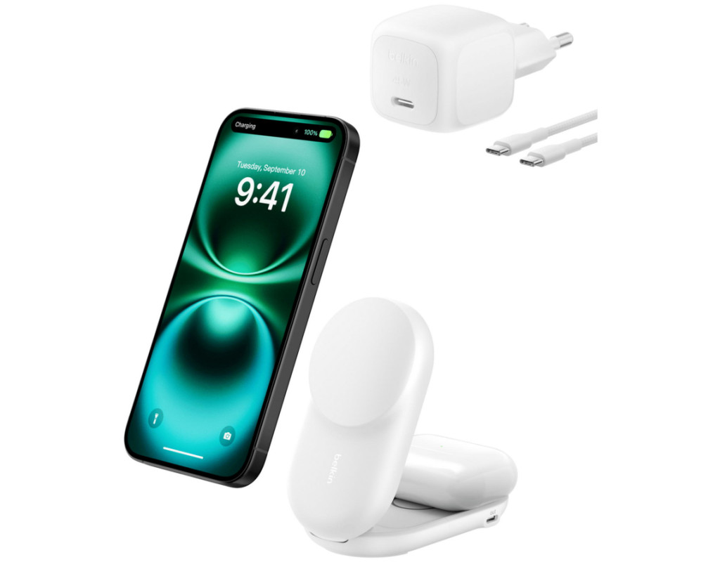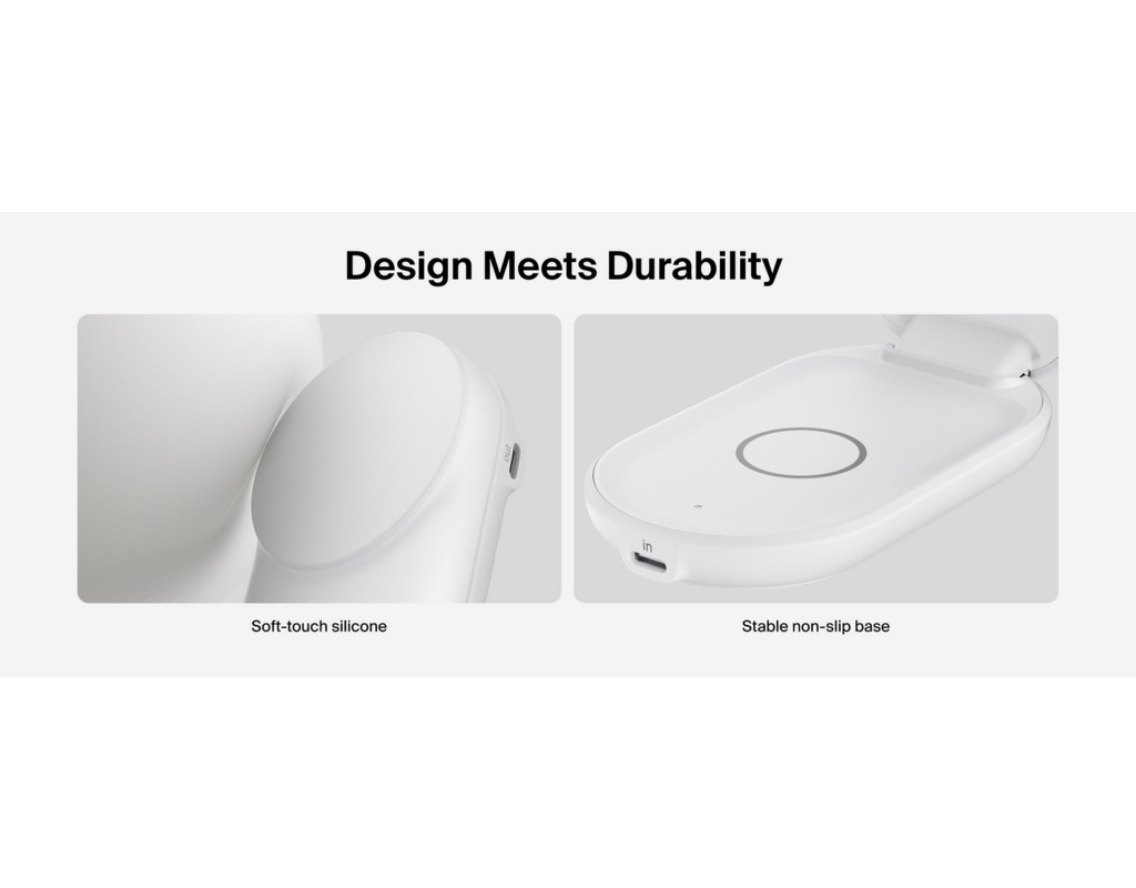 | Заряджайте два пристрої одночасно швидко та безпечно завдяки сертифікованій технології Qi2 25 Вт. Усього за 29 хв iPhone заряджається від 0 до 50 %, а AirPods отримують бездротове живлення до 5 Вт. Додатково вбудований USB-C порт 5 Вт дає змогу зарядити смартгодинник. Технологія ChillBoost із пасивним охолодженням знижує нагрівання під час швидкого заряджання, зберігаючи оптимальний стан батареї. А завдяки складаному, легкому та портативному дизайну зарядну станцію зручно брати з собою – вона перетворює будь-яку поверхню на зарядний хаб. |