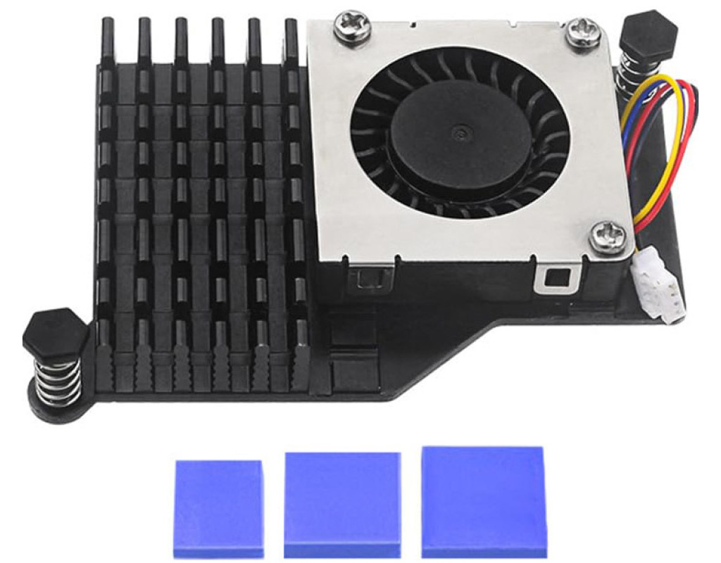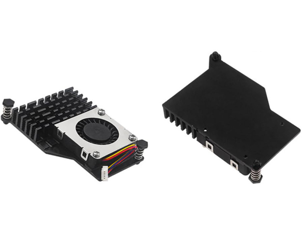 Радіатор з вентилятором для Raspberry Pi 5 (RA800) – це активна система охолодження, яка поєднує анодований алюмінієвий радіатор з високоякісним вентилятором з регульованою швидкістю обертання. Він підключається через чотириконтактний роз'єм на Raspberry Pi 5 і кріпиться за допомогою пружинних шпильок. Основні характеристики: