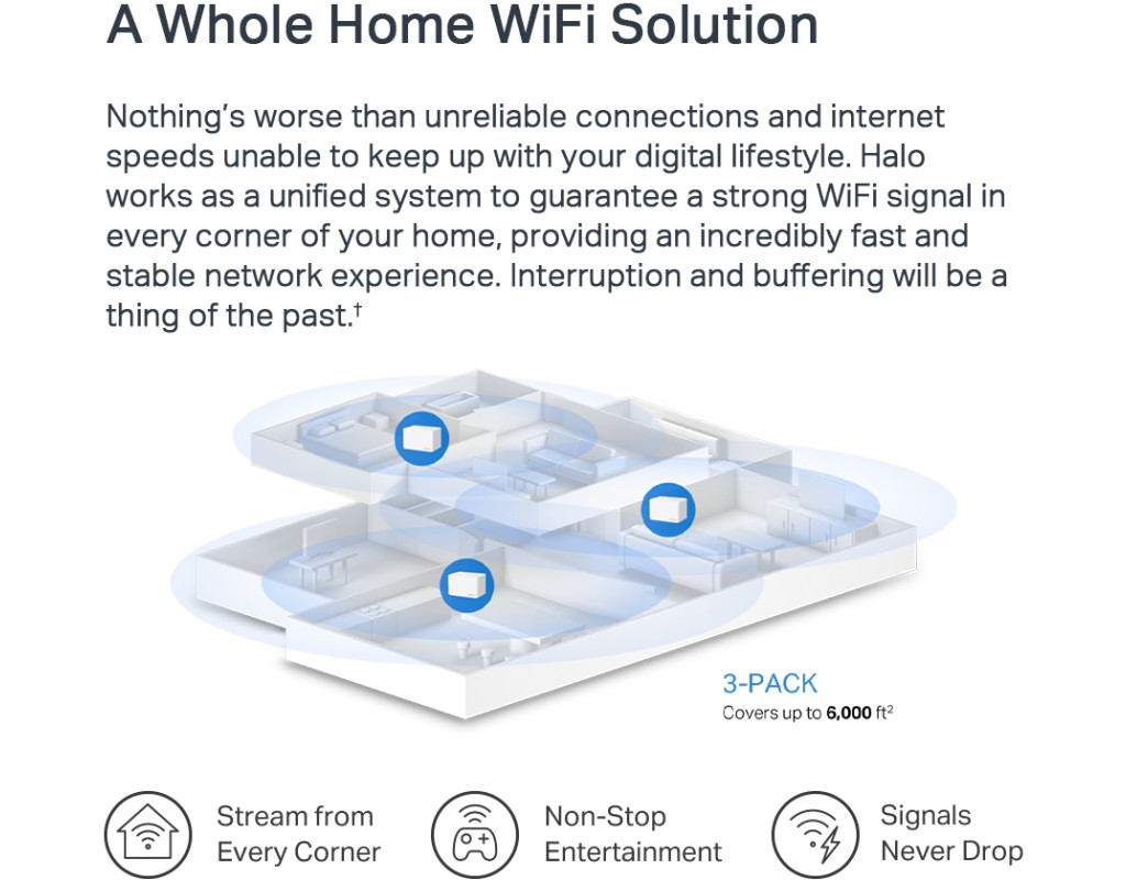 | Оснащений Wi-Fi 6, Halo H70X покращує практично всі аспекти вашої мережі: швидкість, ефективність і пропускну здатність.